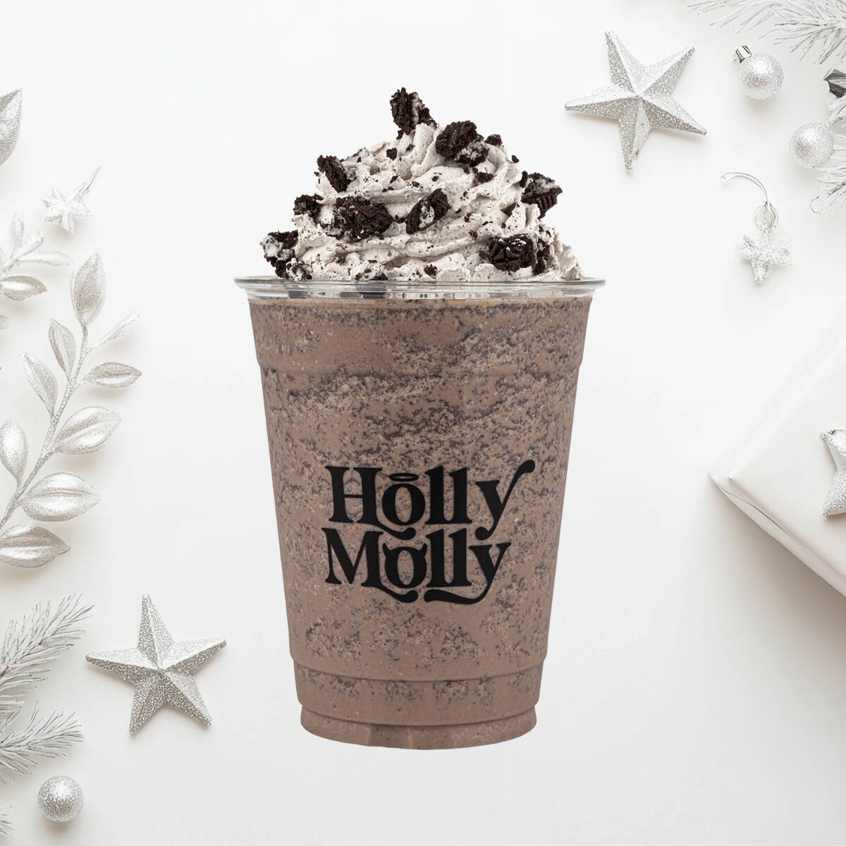 Malteada sabor chocolate con pedacitos de galleta oreo.