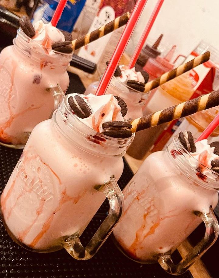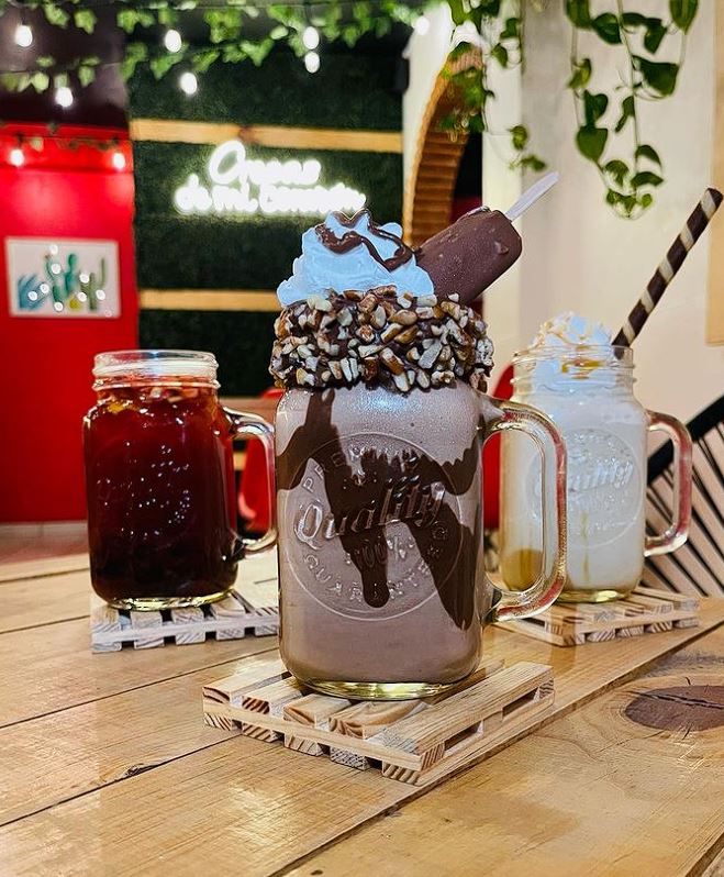 Cafe expreso, leche, tapioca, hielos y sabor de tu elección.