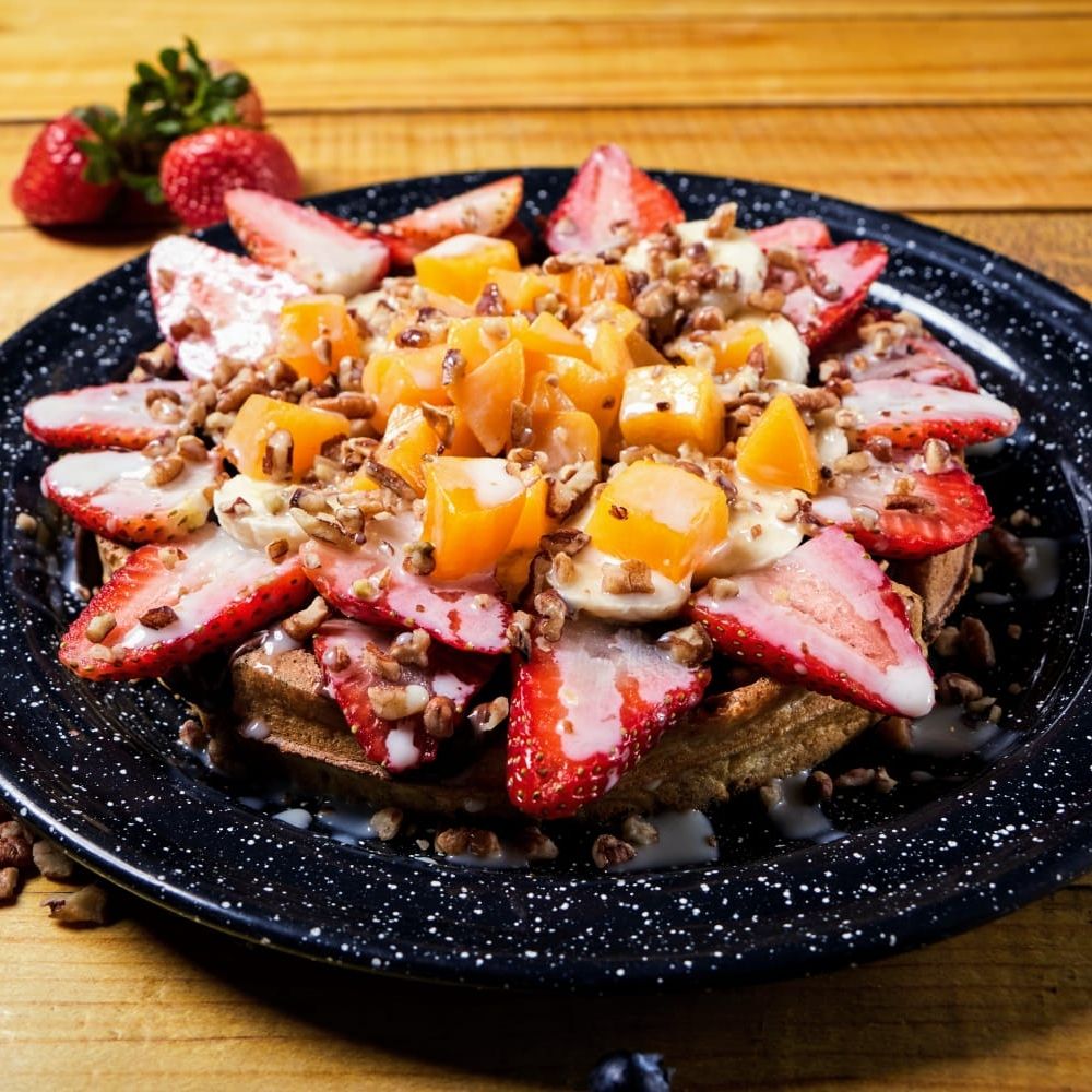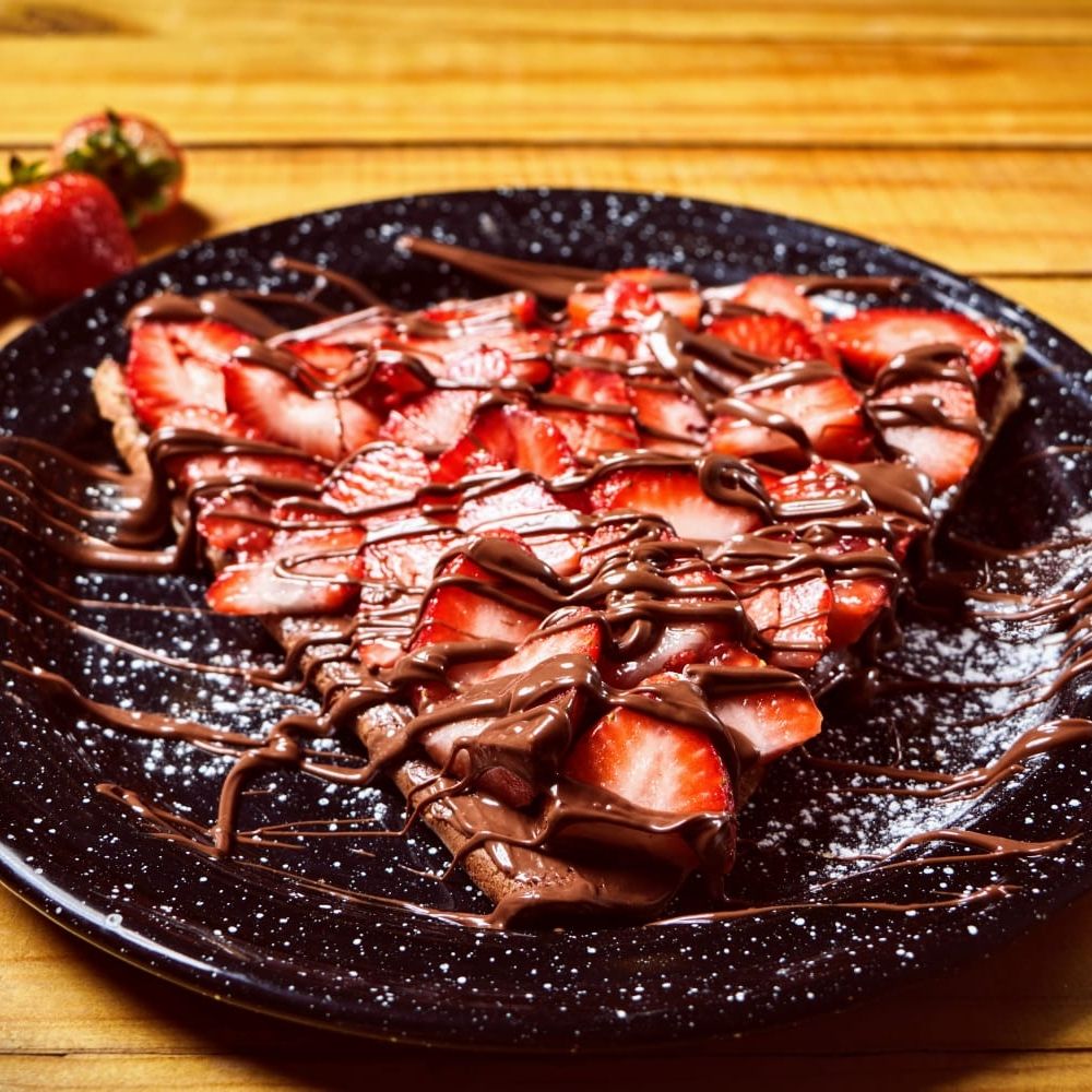 Nutella, lechera, nuez, plátano, durazno y fresa.