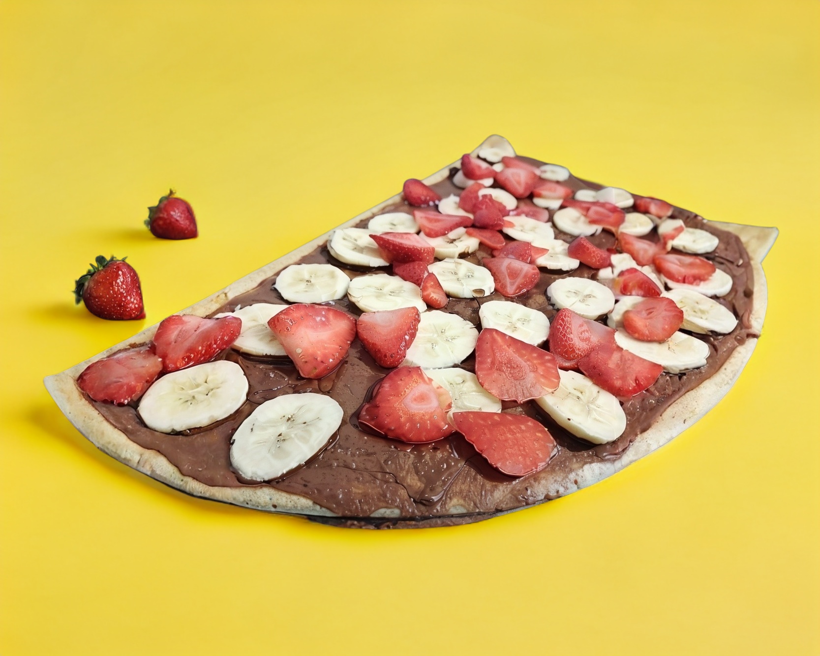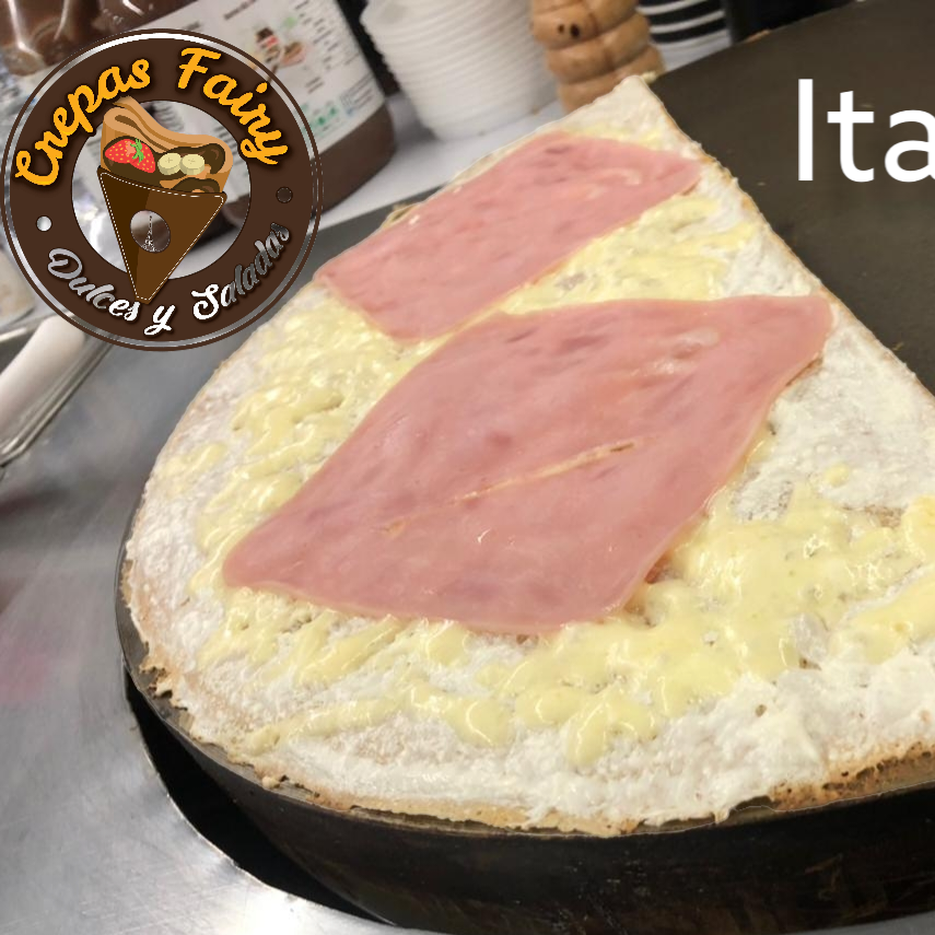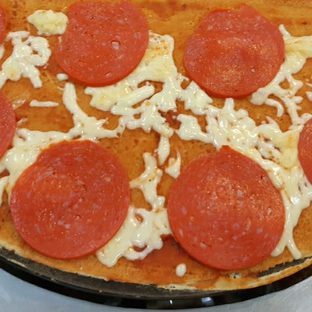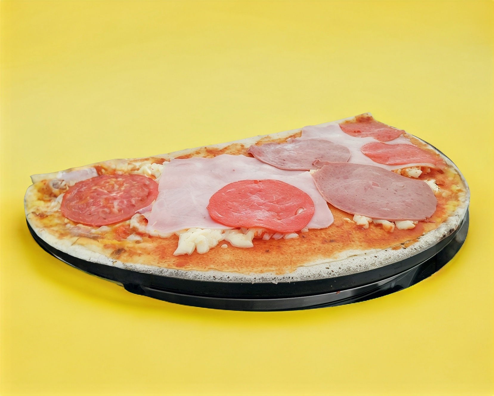 Salsa de tomate, manchego, pepperoni, jamón y salami.