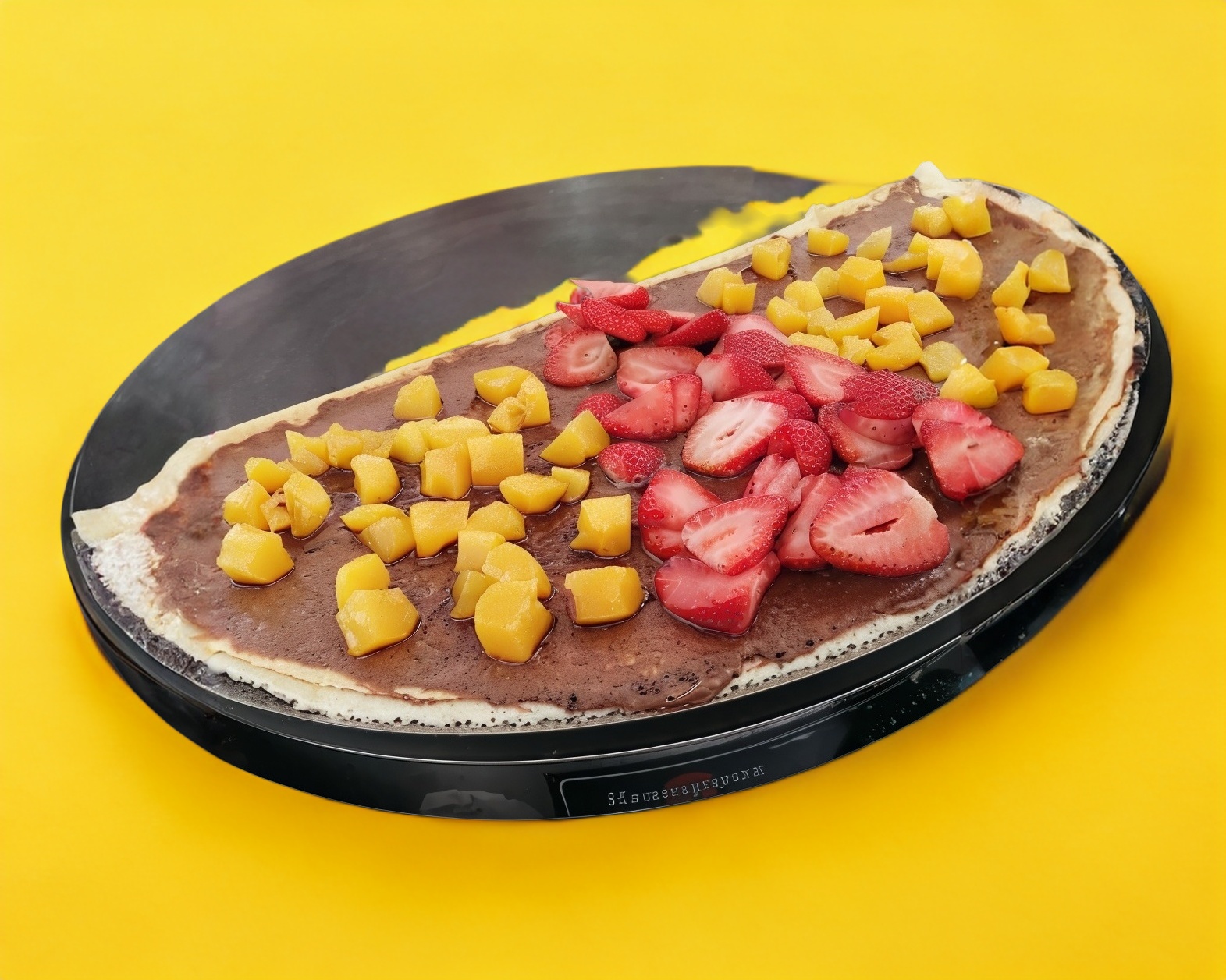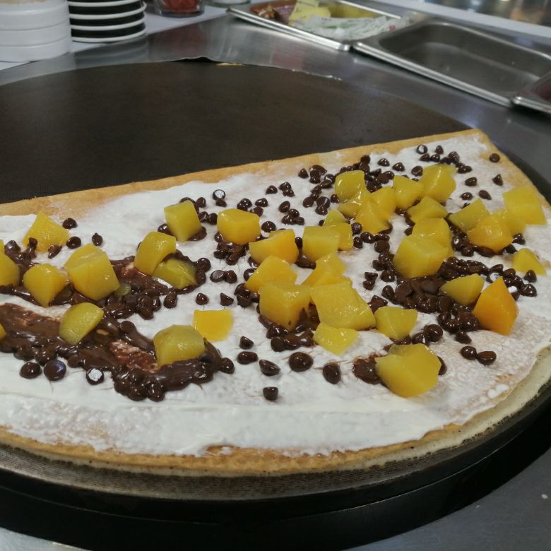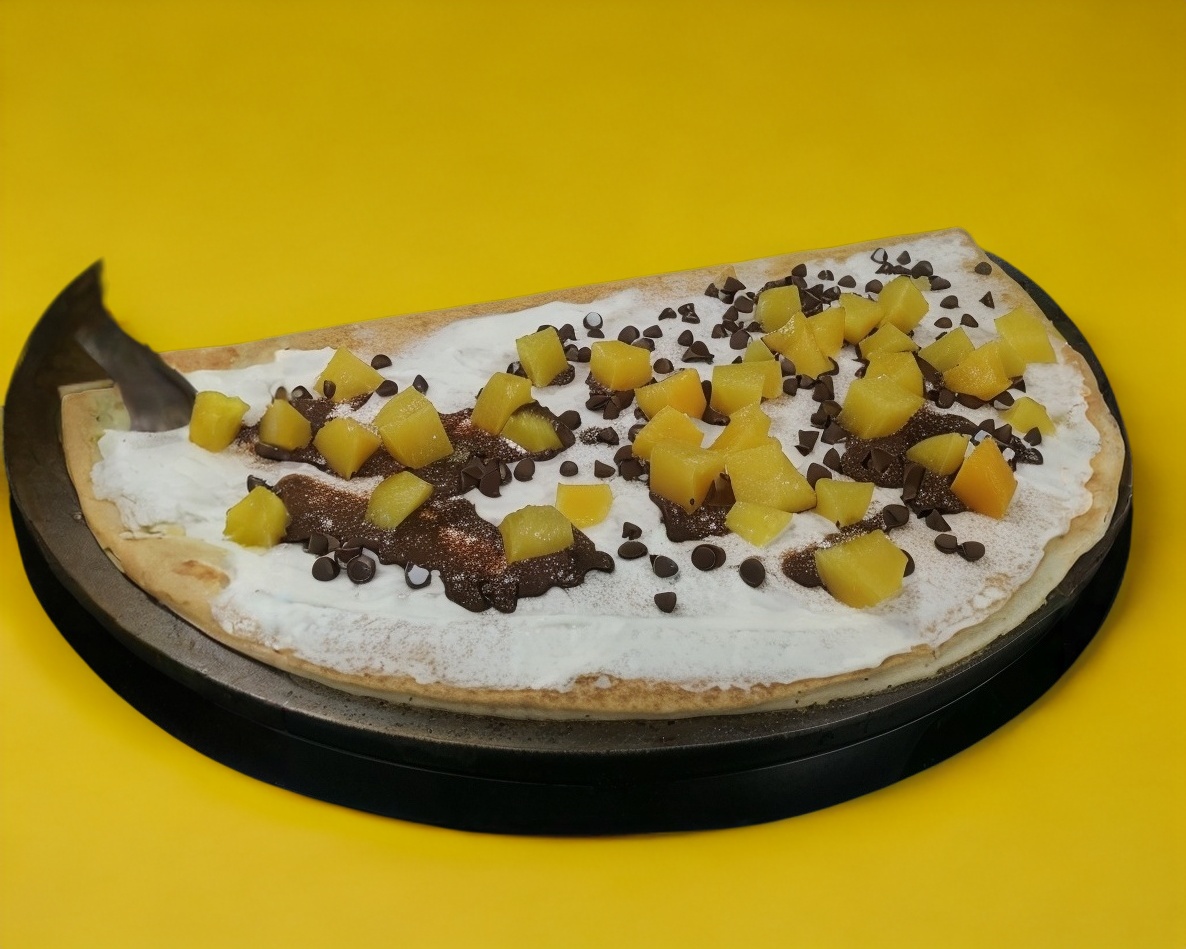 Salsa de tomate, manchego, pepperoni, jamón y salami.