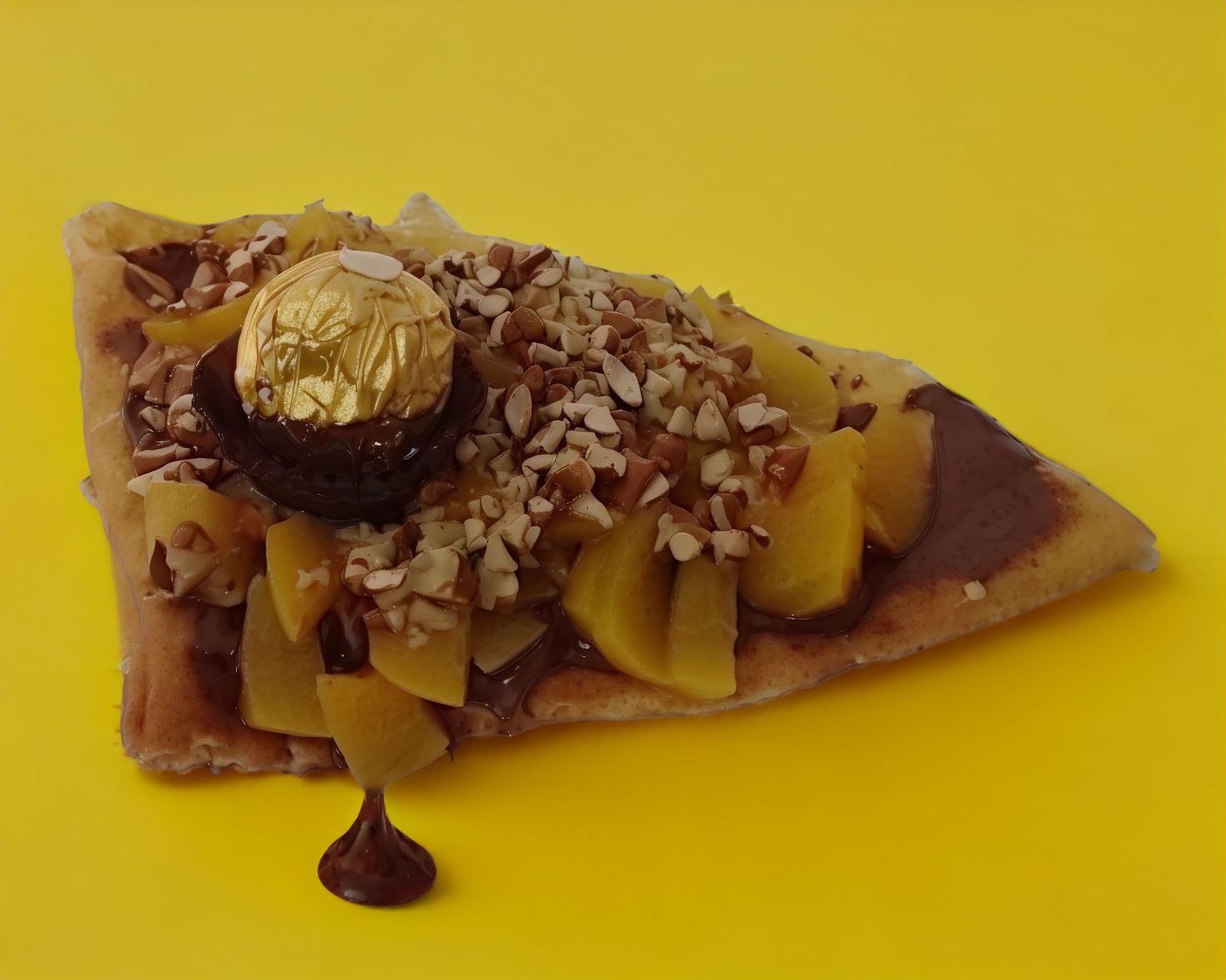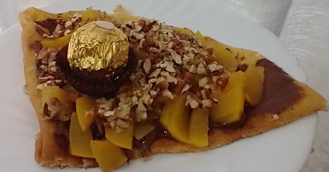 Base de nutella, durazno, chocolate liquido, nuez y chocolate ferrero