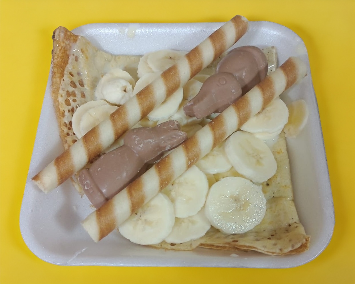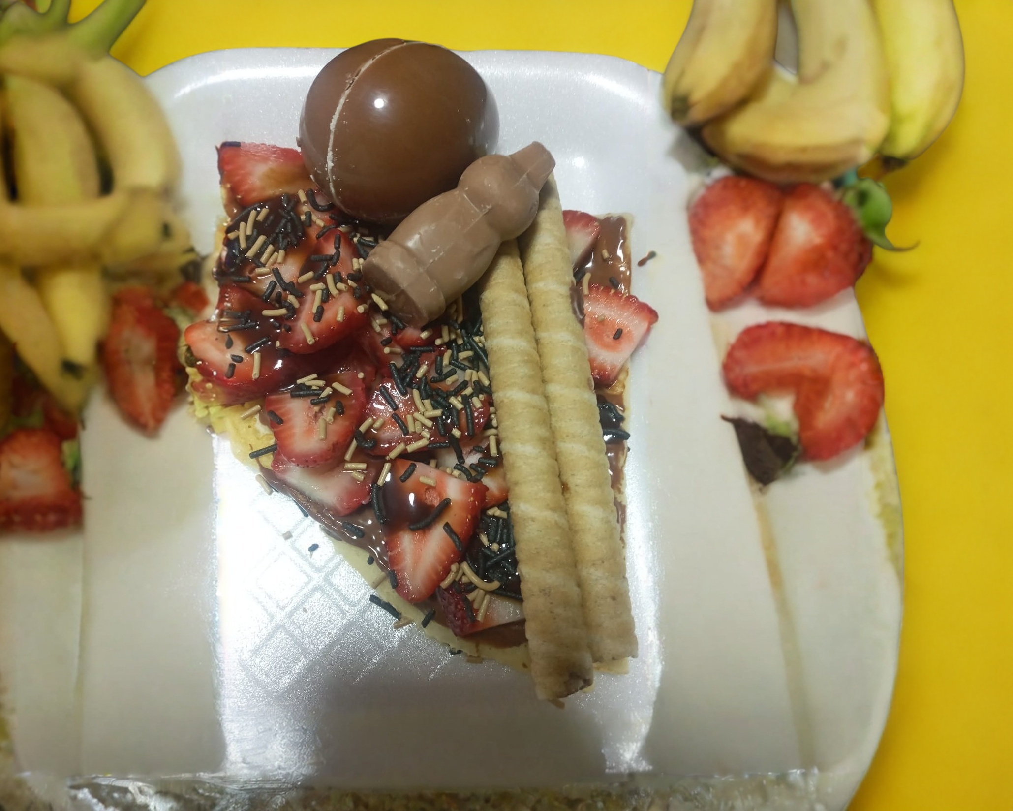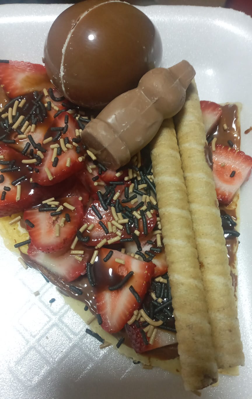 Base de Nutella, plátano, arriba lechera, granillo de chocolate y huevo kinder, tubitos de chocolate son a disposición de la tienda.