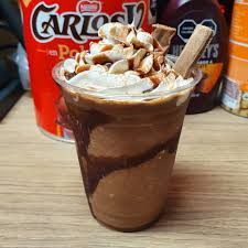 Frappe de chocolate Carlos V con crema batida, granillo de chocolate y chocolate stick