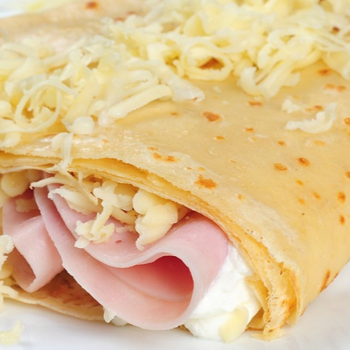 LA crepa es preparada con Queso philadelphia y jamon.