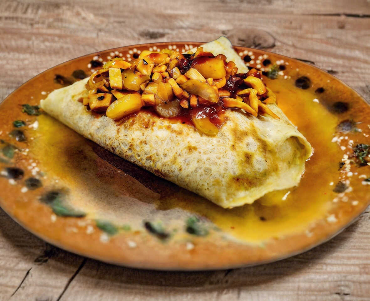 Crepa rellena de 4 quesos con un Omelette al gusto
