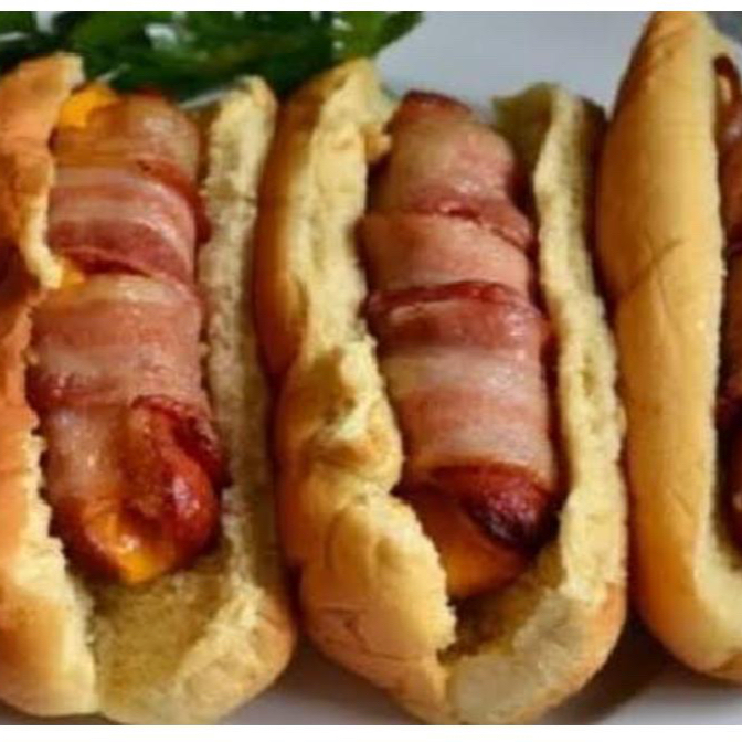 3 hot dogs con tocino queso, chiles, mayonesa y catsup