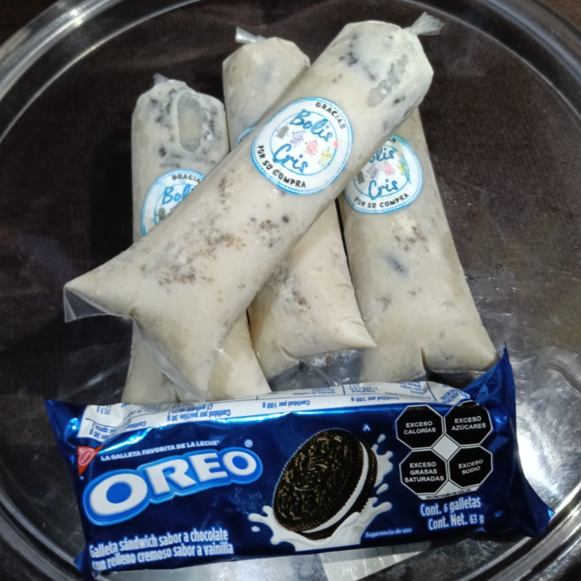 Cremoso sabor a galleta oreo, trocitos de galleta oreo y base leche