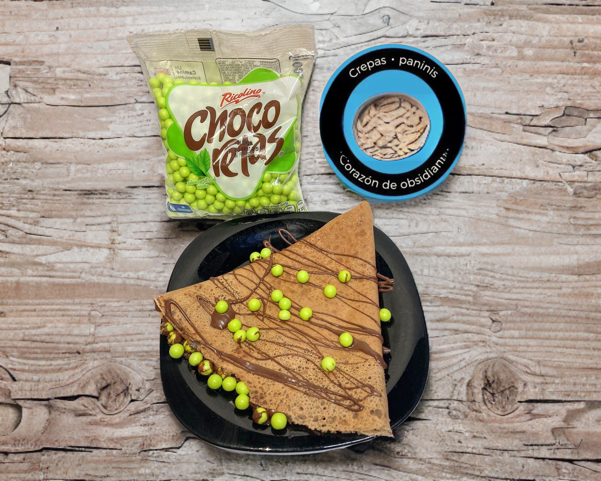 Deliciosa crepa rellena de Nutella y Chocoretas Ricolino.