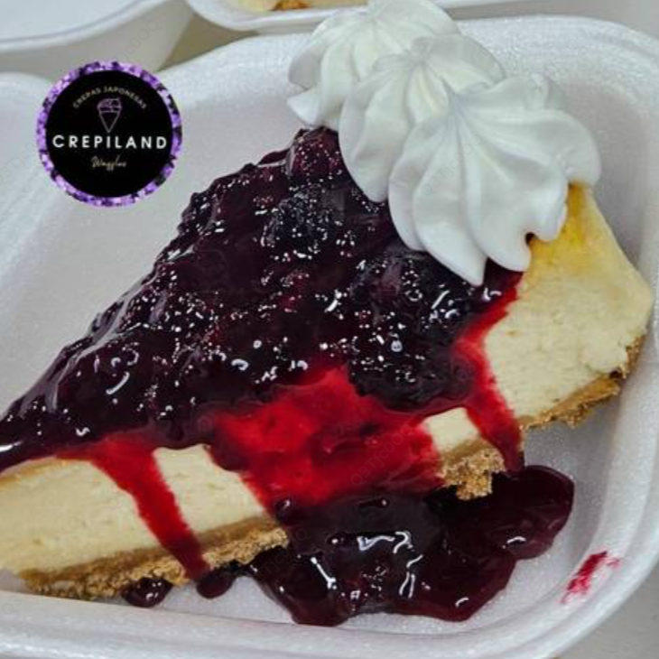 Cheesecake, mermelada de zarzamora, crema batida.