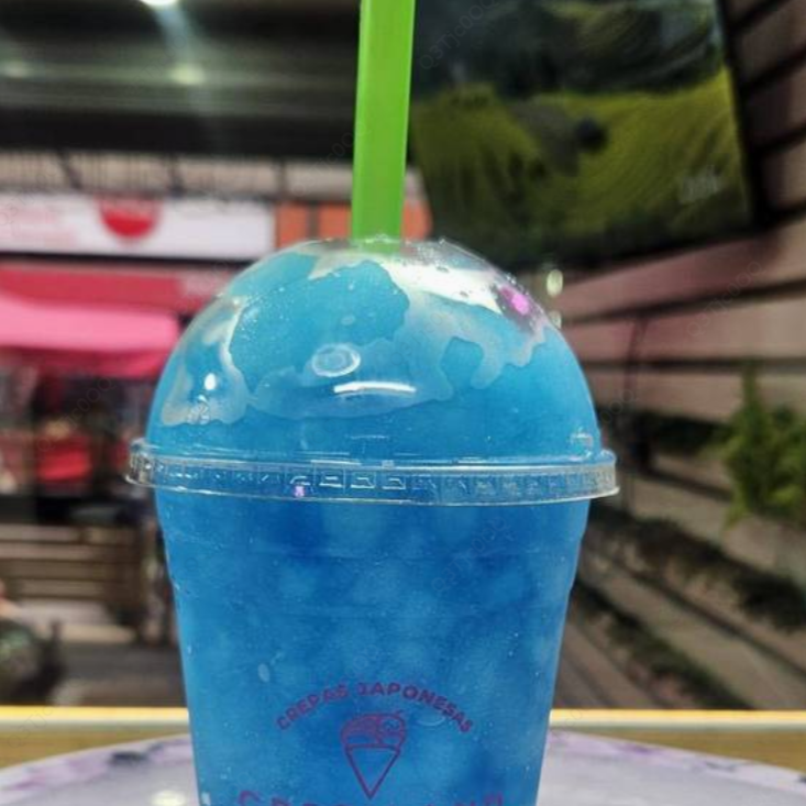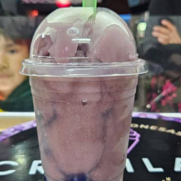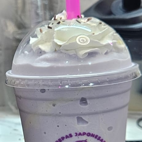 Bebida frappé de taro, servida fría.