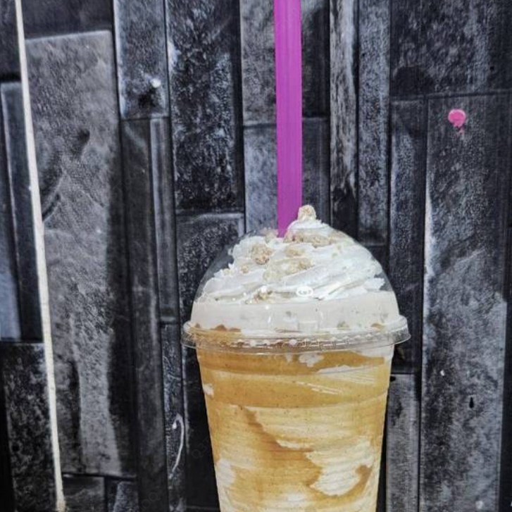Refrescante bebida helada estilo frappé con sabor a vainilla.
