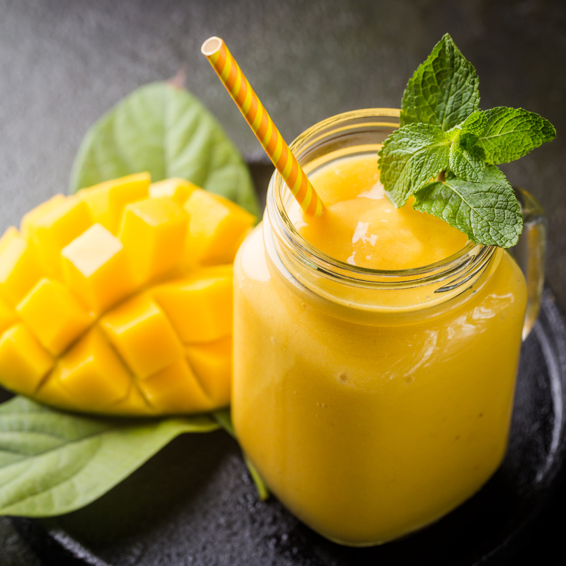 Bebida gasificada sabor mango, estilo soda italiana.