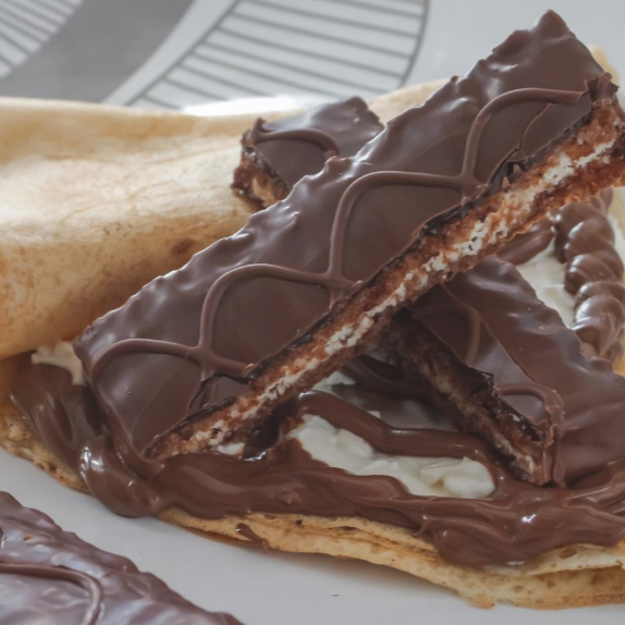 Crepa elaborada con queso philadelphia, lechera y galletas oreo en trozos