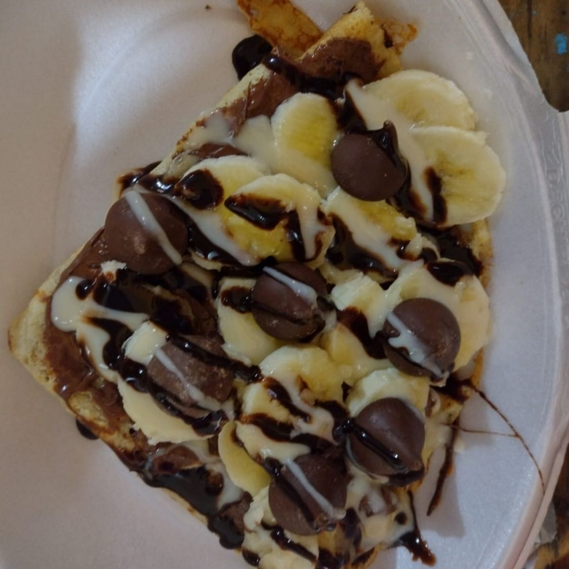 Nutella, fresa, plátano, chantilly y gotas de chocolate