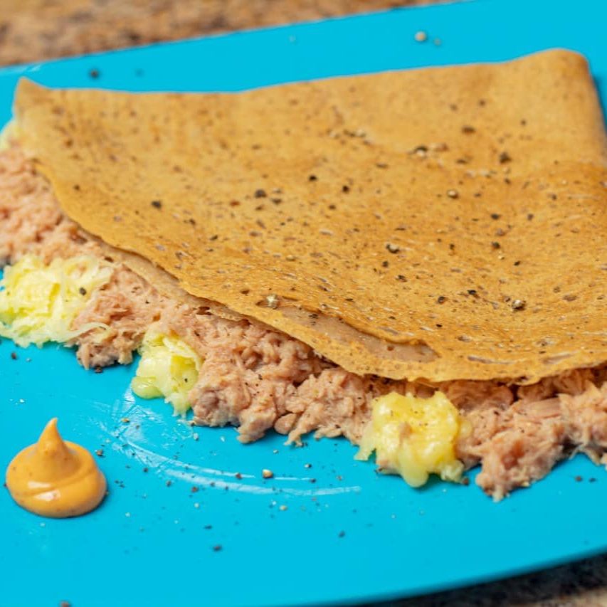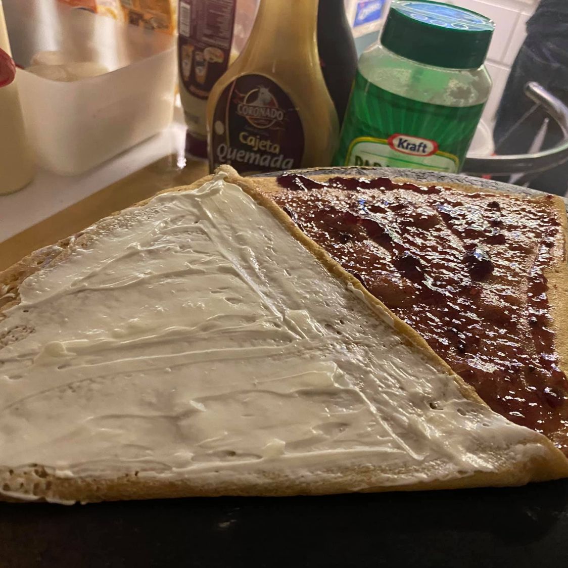 Crepa con philadelphia, manchego, pimienta negra al gusto, sal y parmesano.