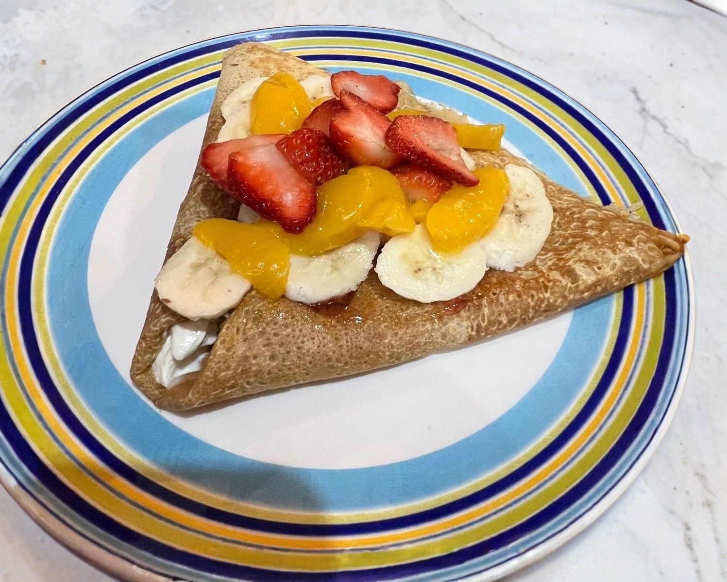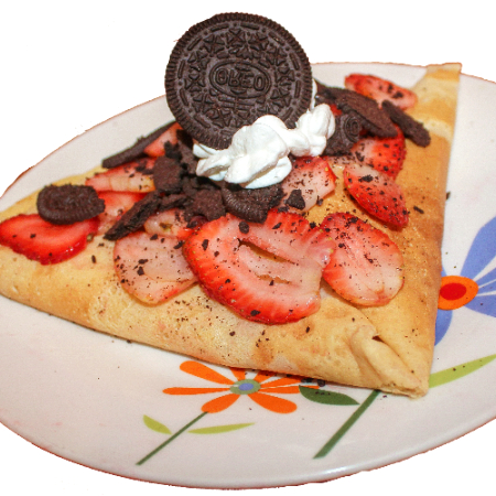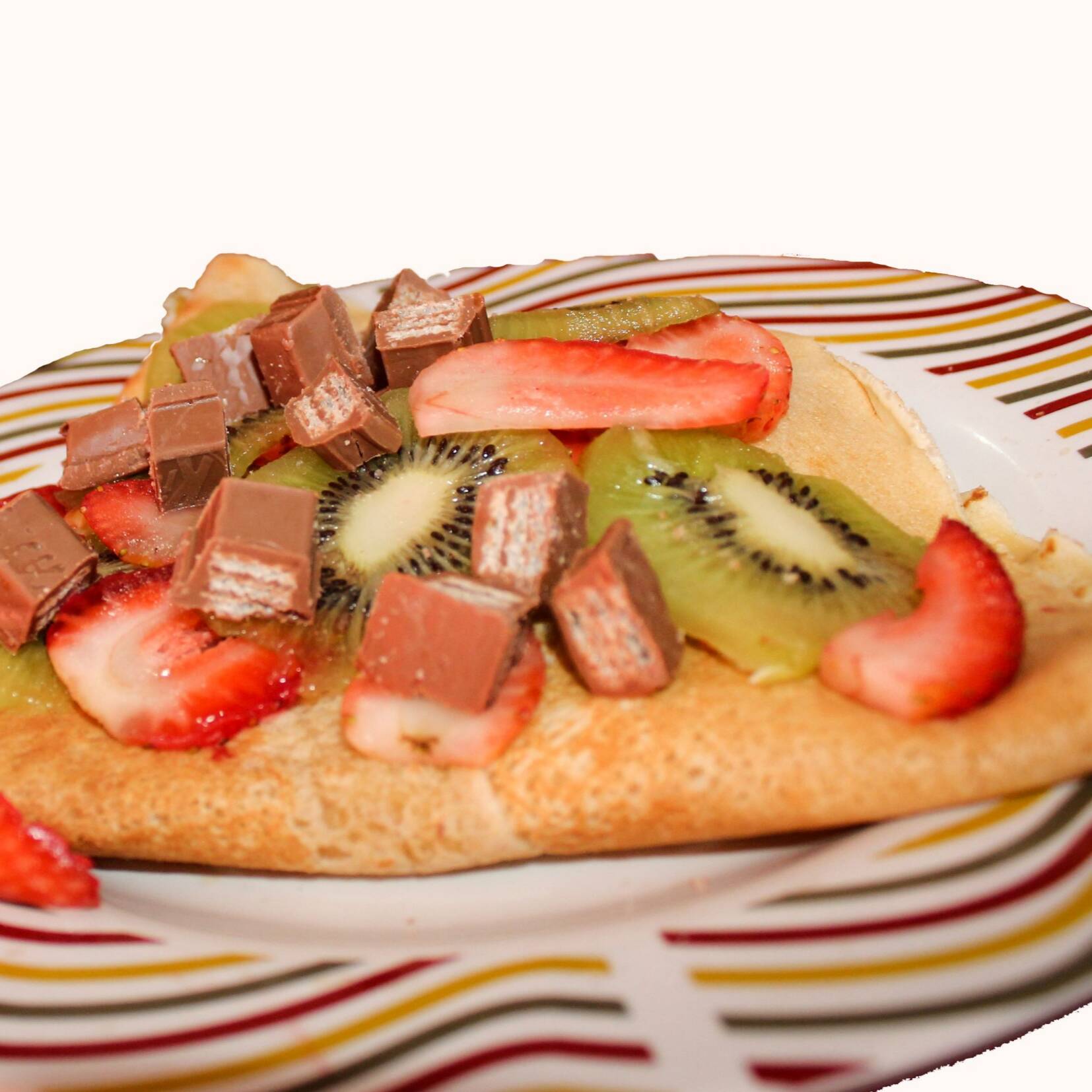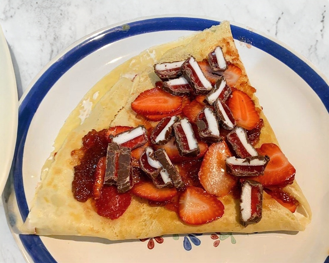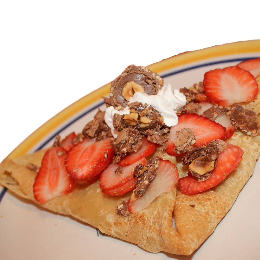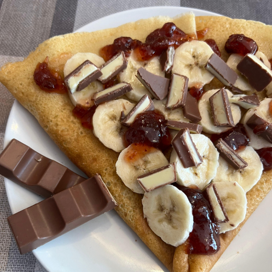 1 crepa Kinder personal, con queso Philadelphia, mermelada de fresa y plátano, ya preparada.