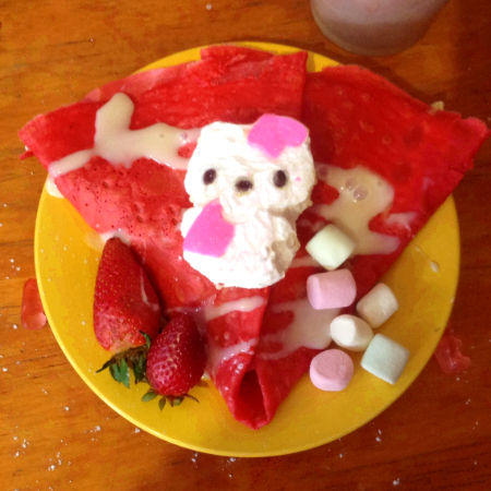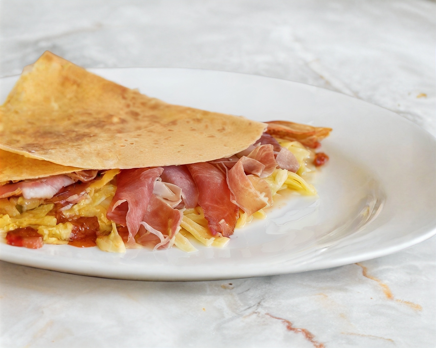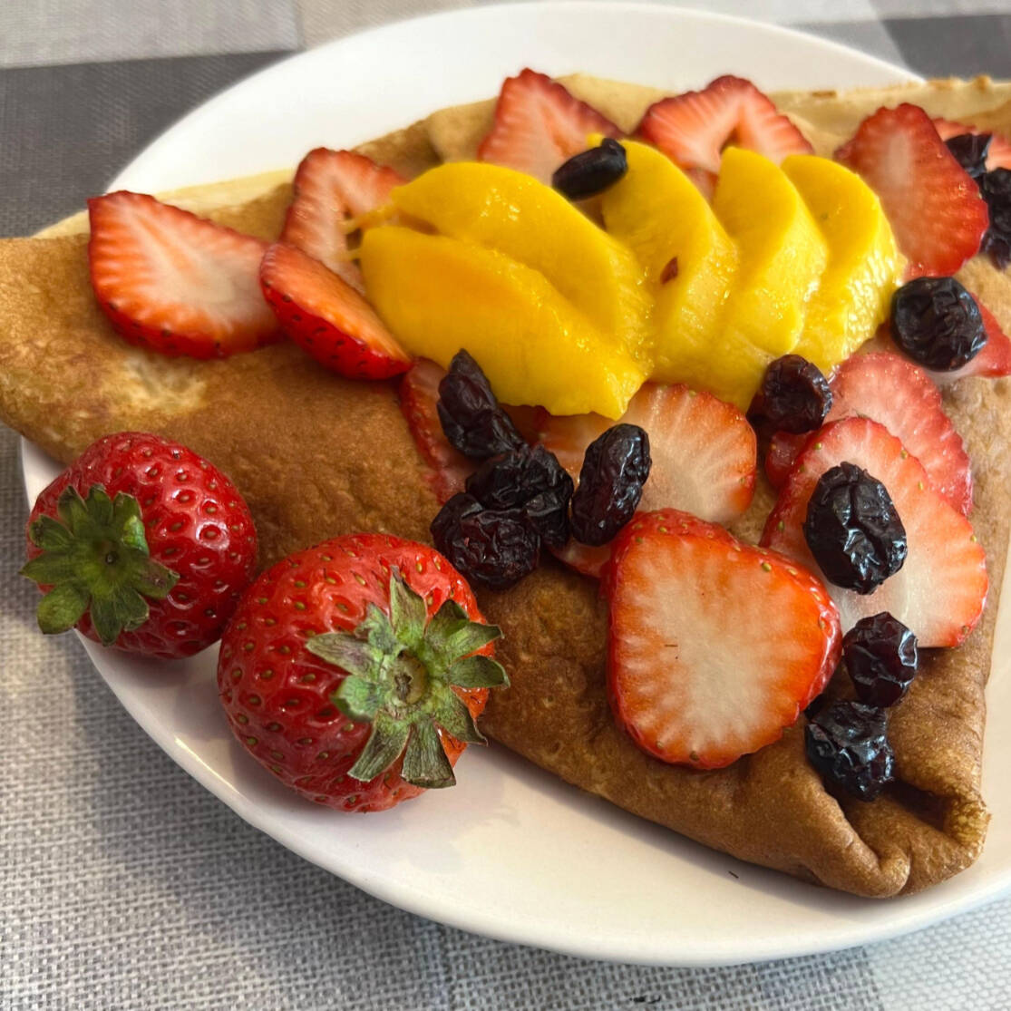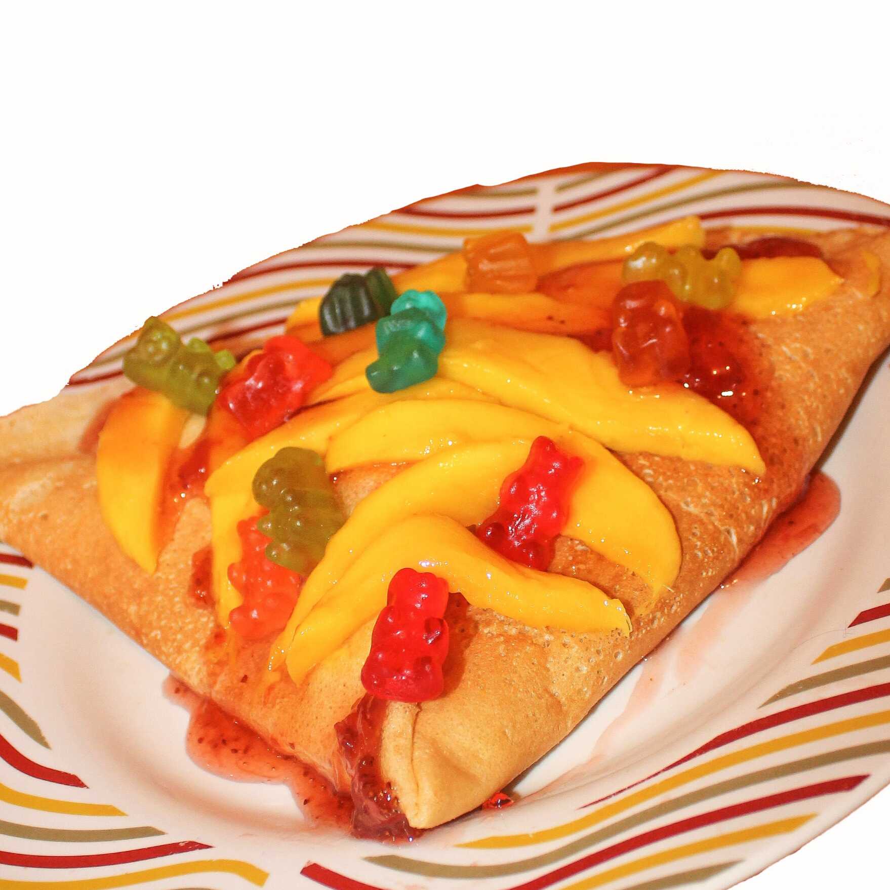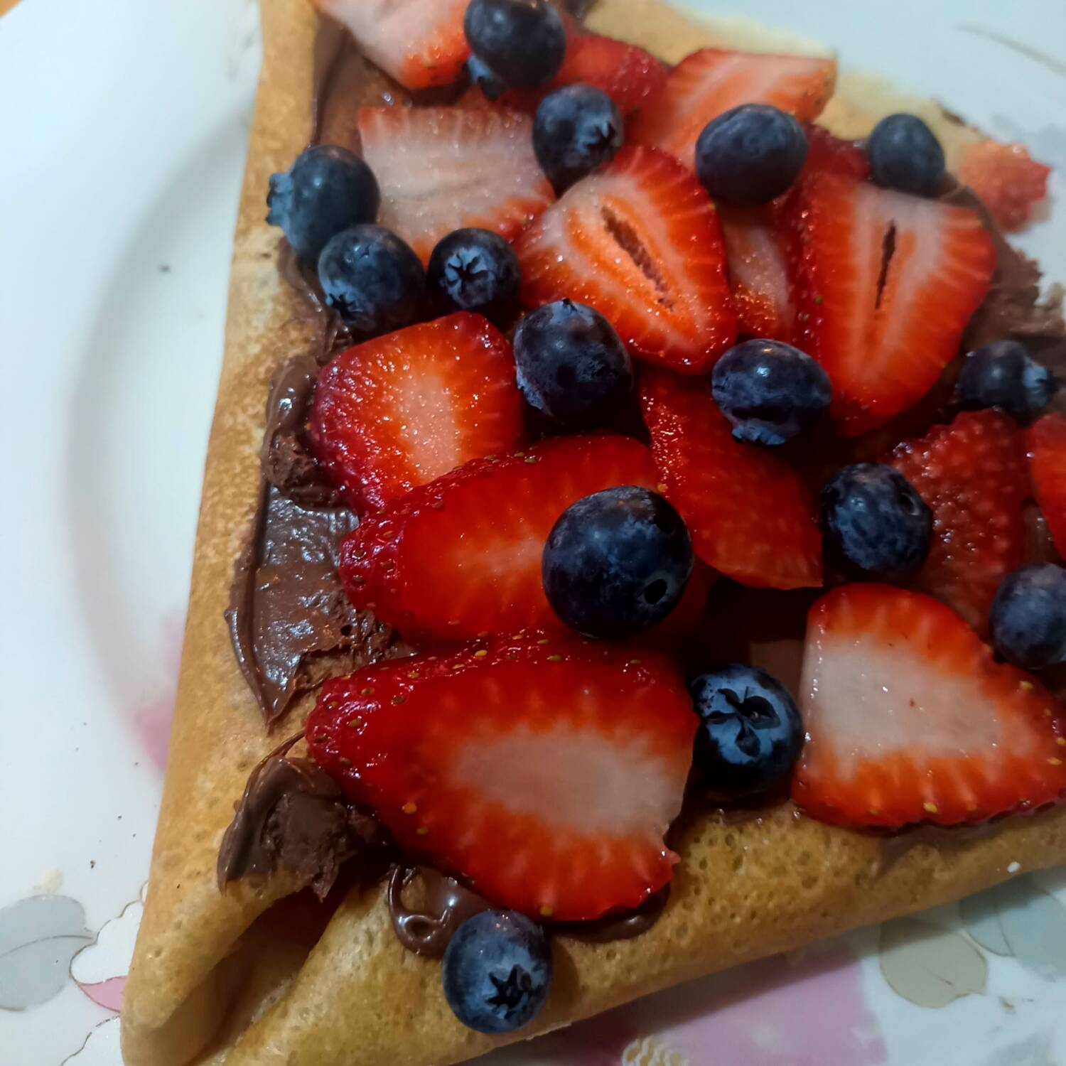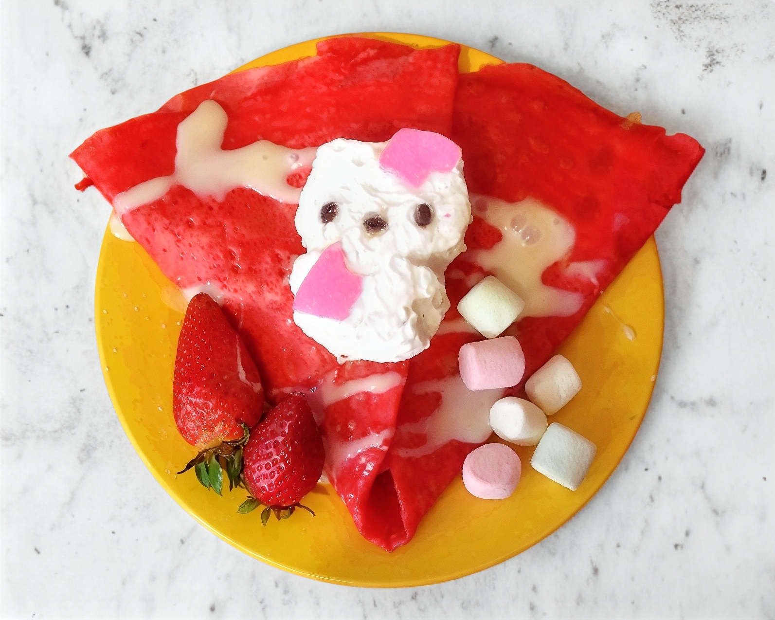 1 crepa Kinder personal, con queso Philadelphia, mermelada de fresa y plátano, ya preparada.
