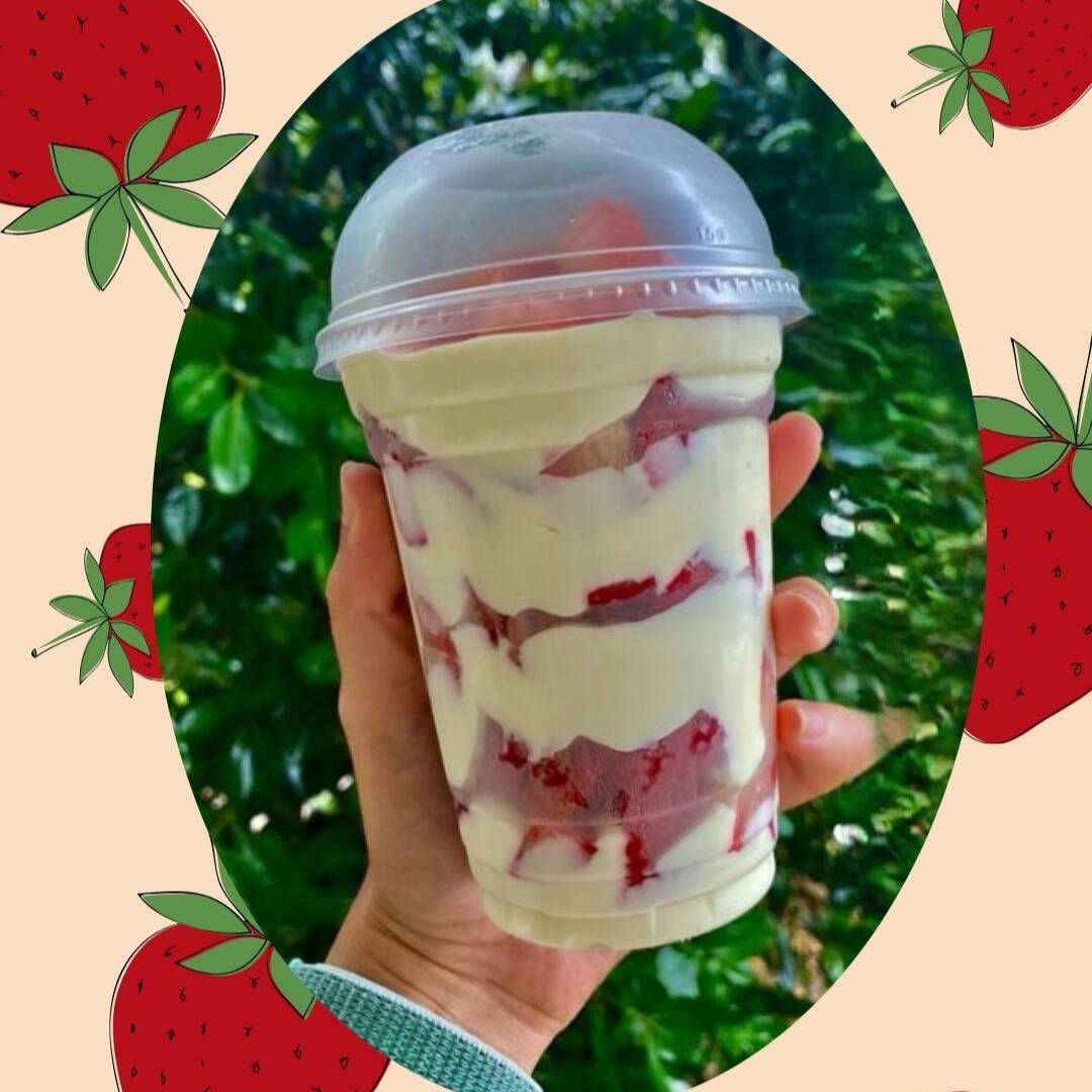 Deliciosas fresas con cema dulce y crema batida de 16 oz