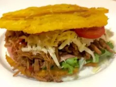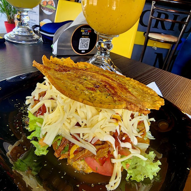 Delicioso y sustancioso, relleno a elegir, parecido en su forma a una hamburguesa, pero mucho más crujiente. Su base y tapa es el “tostón” que es plátano macho crispy, puedes elegir ,pollo, carne o chorizo.