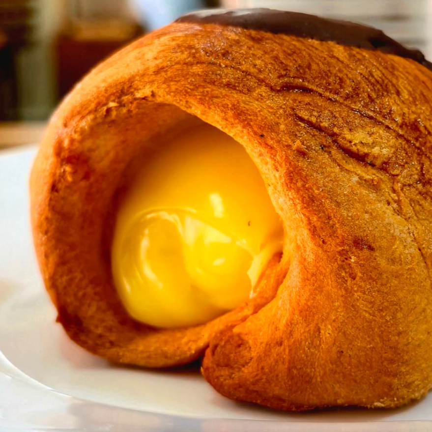 Delicioso pan crujiente con chocolate relleno de crema pastelera