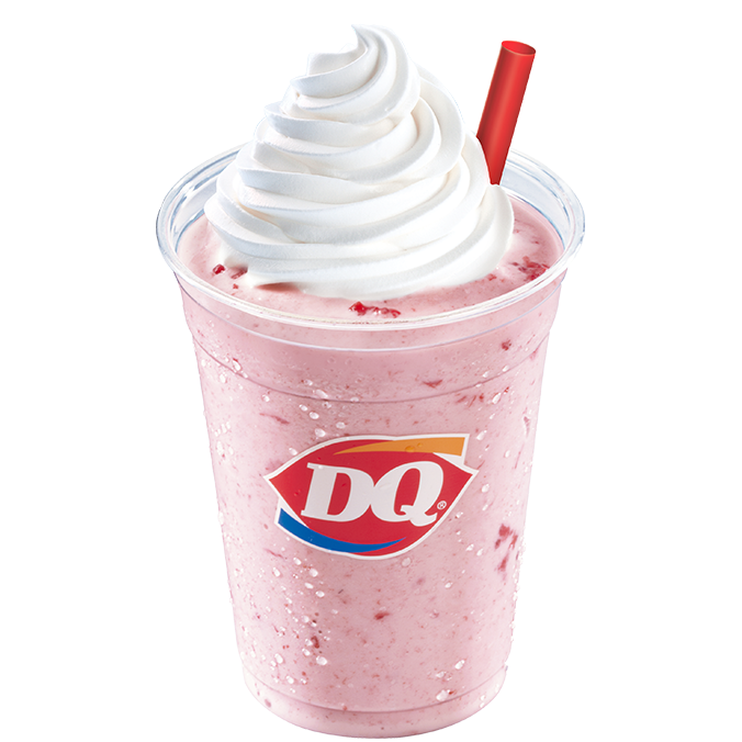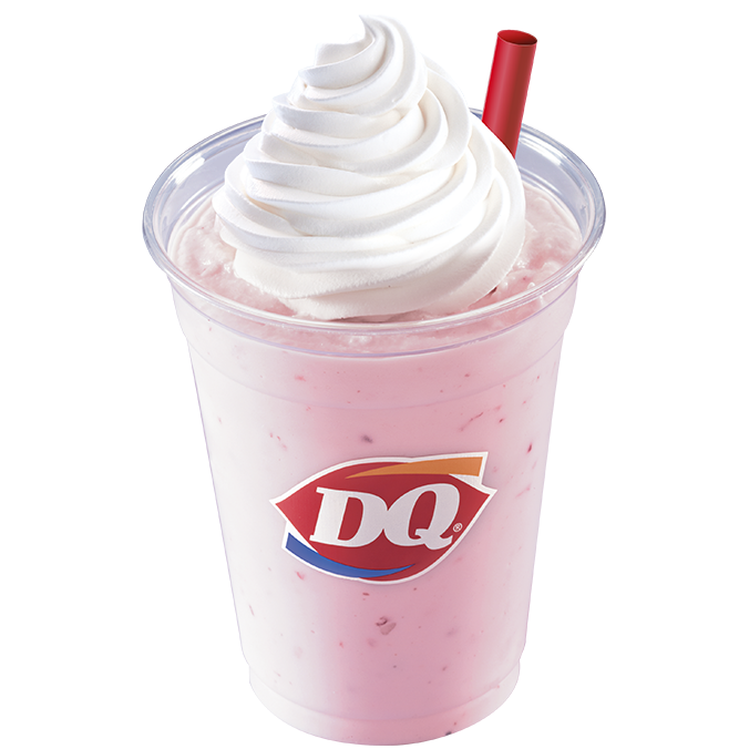 Le dimos un toque de alegría a la clásica malteada de fresa para volverla aún más deliciosa, gracias al helado DQ® y topping de crema batida.