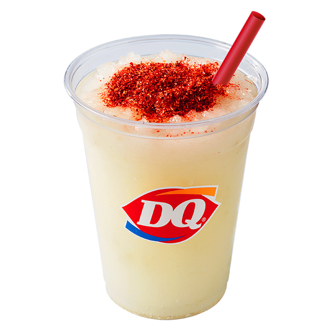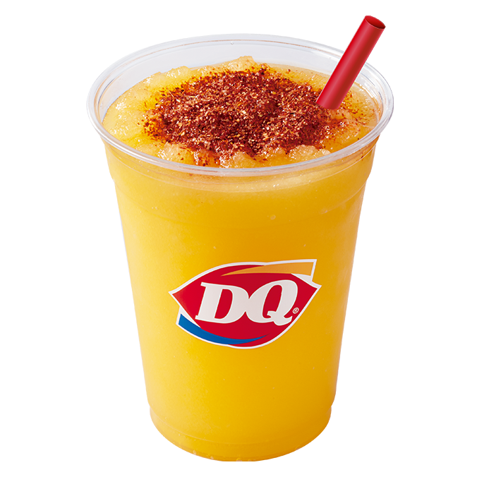 Refréscate con el delicioso DQ® Slush un granizado frutal sabor mango con topping de chilito, ¡te va a encantar!