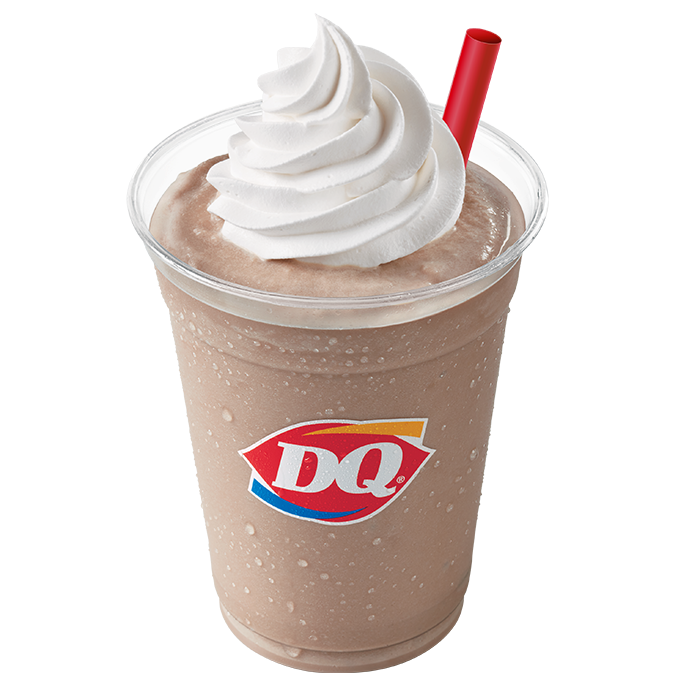 Helado DQ® y leche mezclados con el ingrediente estrella: chocolate y topping de crema batida.