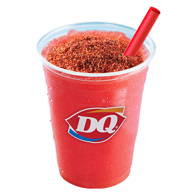 Refréscate con el delicioso DQ® Slush un granizado frutal sabor fresa con topping de chilito, ¡te va a encantar!