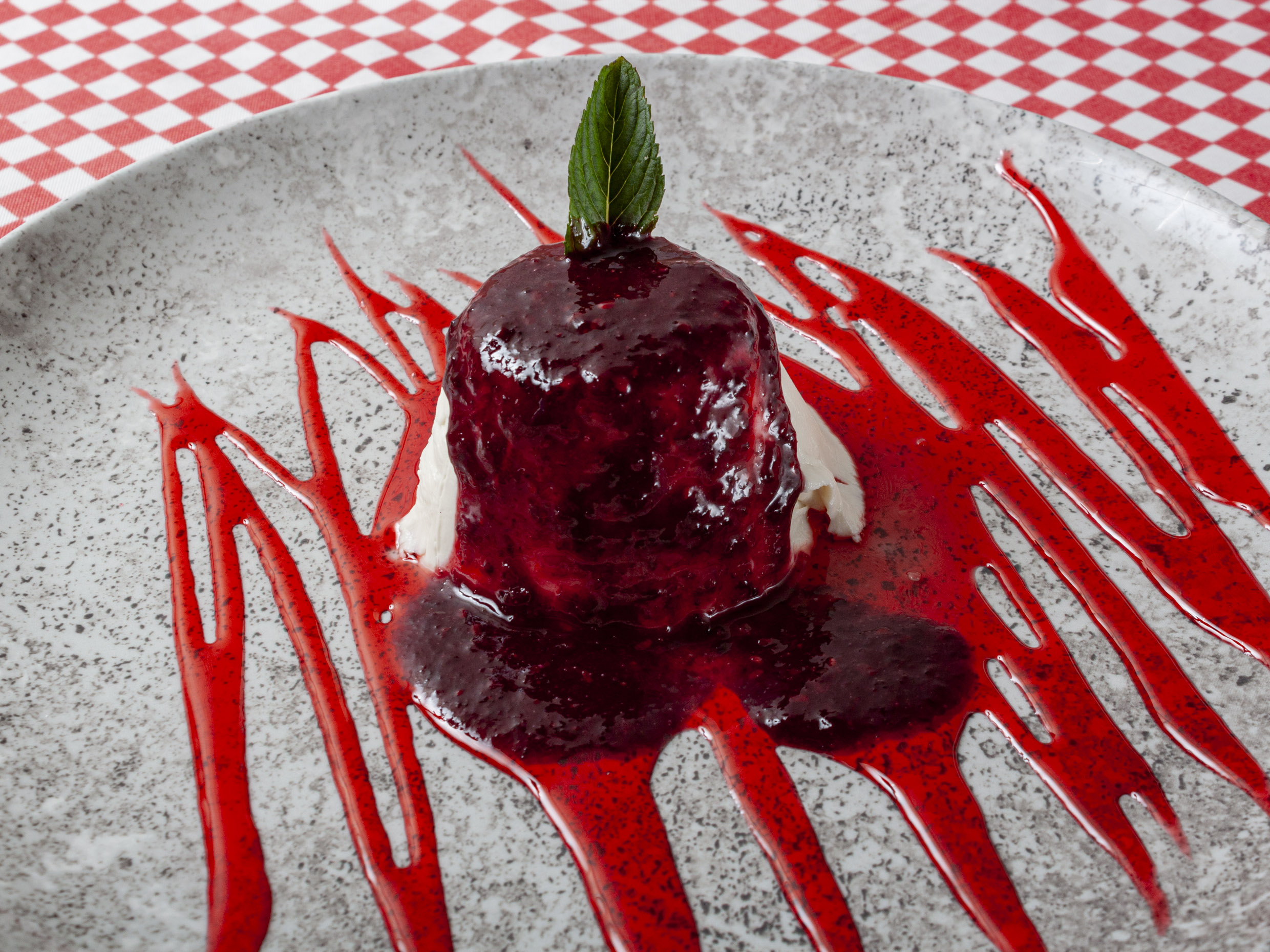 110 Gr. postre frío italiano a base de una nata de leche, bañada en salsa de frutos rojos.