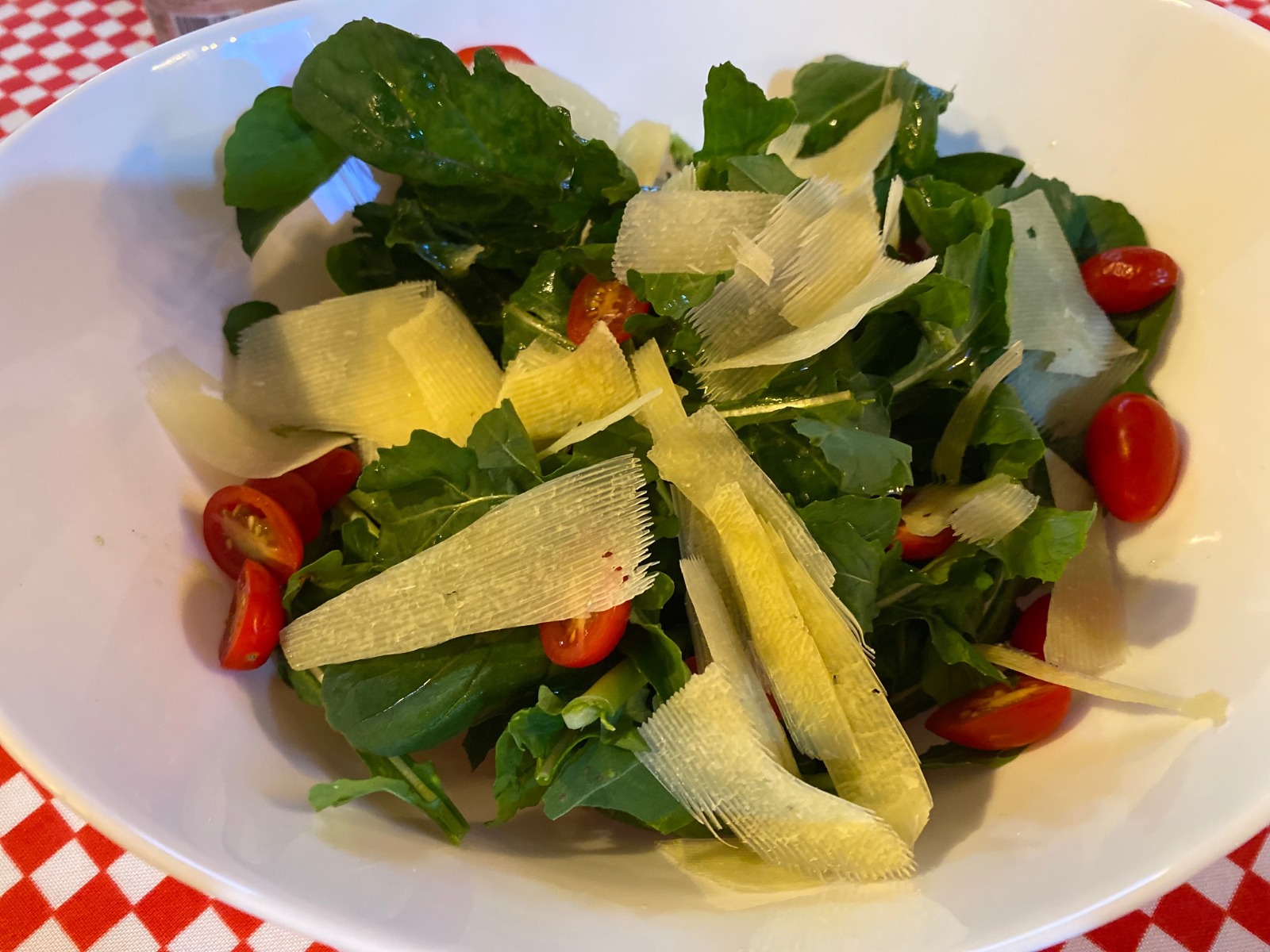 250 Gr. de ensalada de arúgula, lechuga italiana, queso grana padano y nuez con vinagreta.