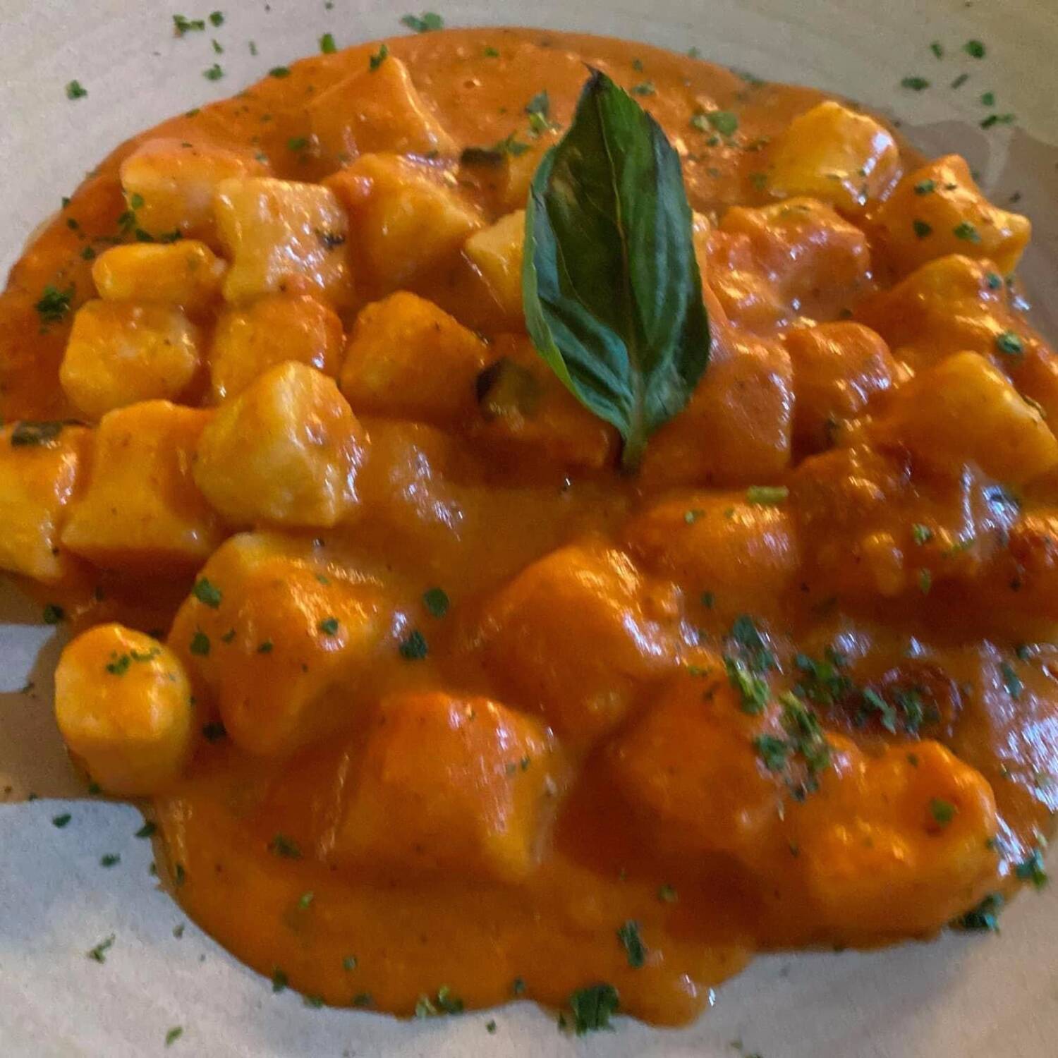Tipo de pasta italiana elaborada a base de patata, harina, queso parmesano, bañados en salsa de 3 quesos o pomodoro.