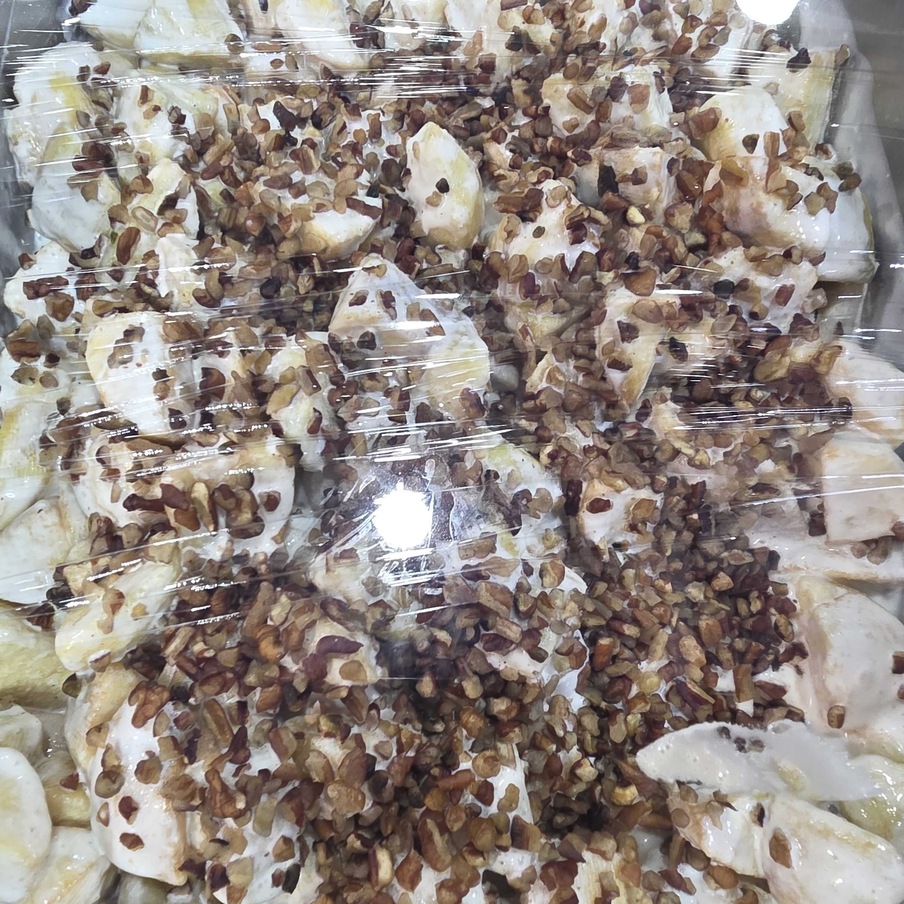 Manzana en cubos con nuez picada y crema preparada