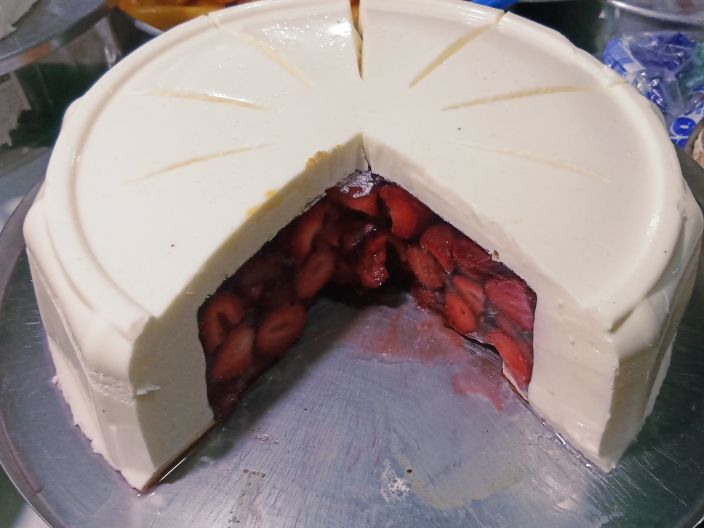 Gelatina de queso Philadelphia rellena de fresas