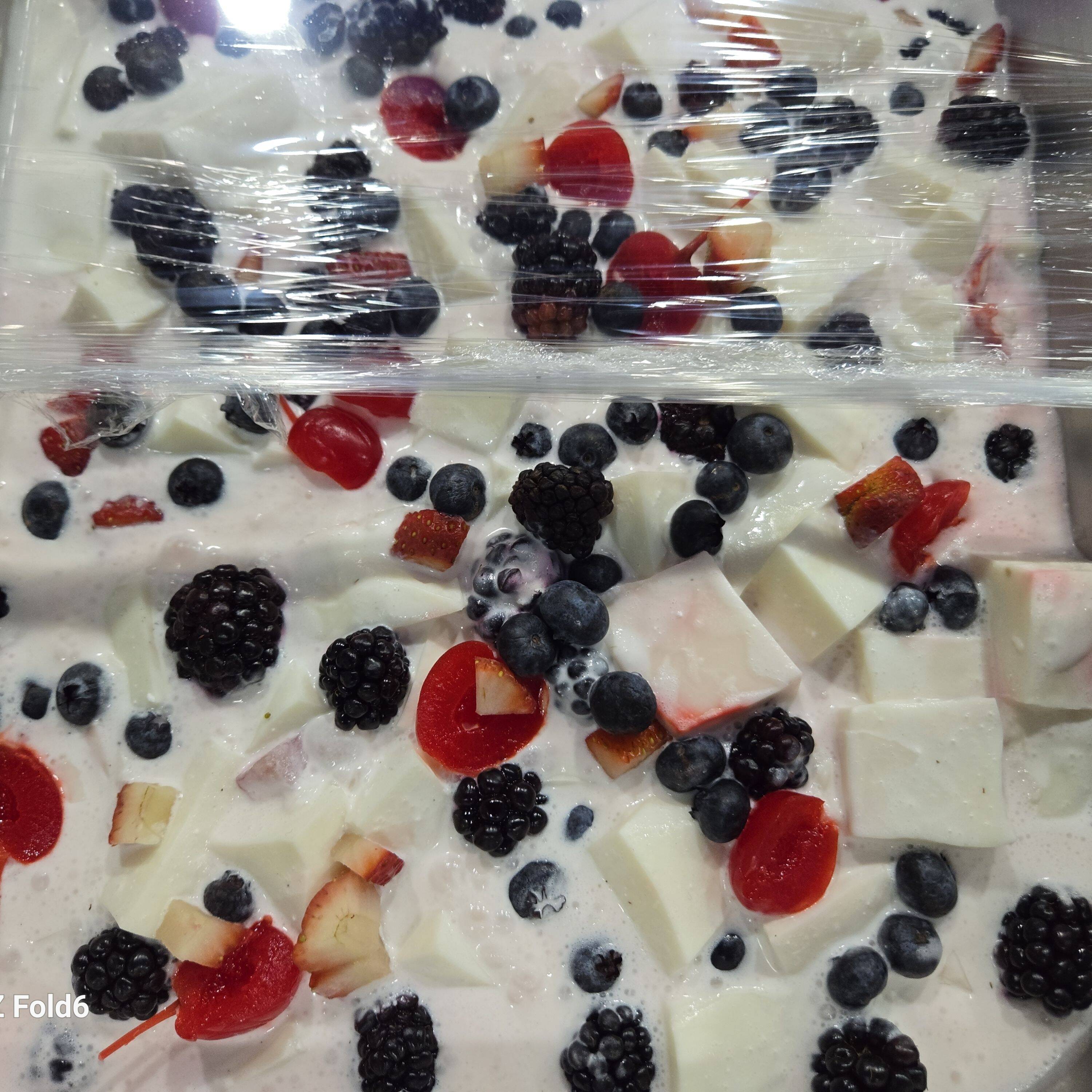 Gelatina de fresa y mora azul con crema