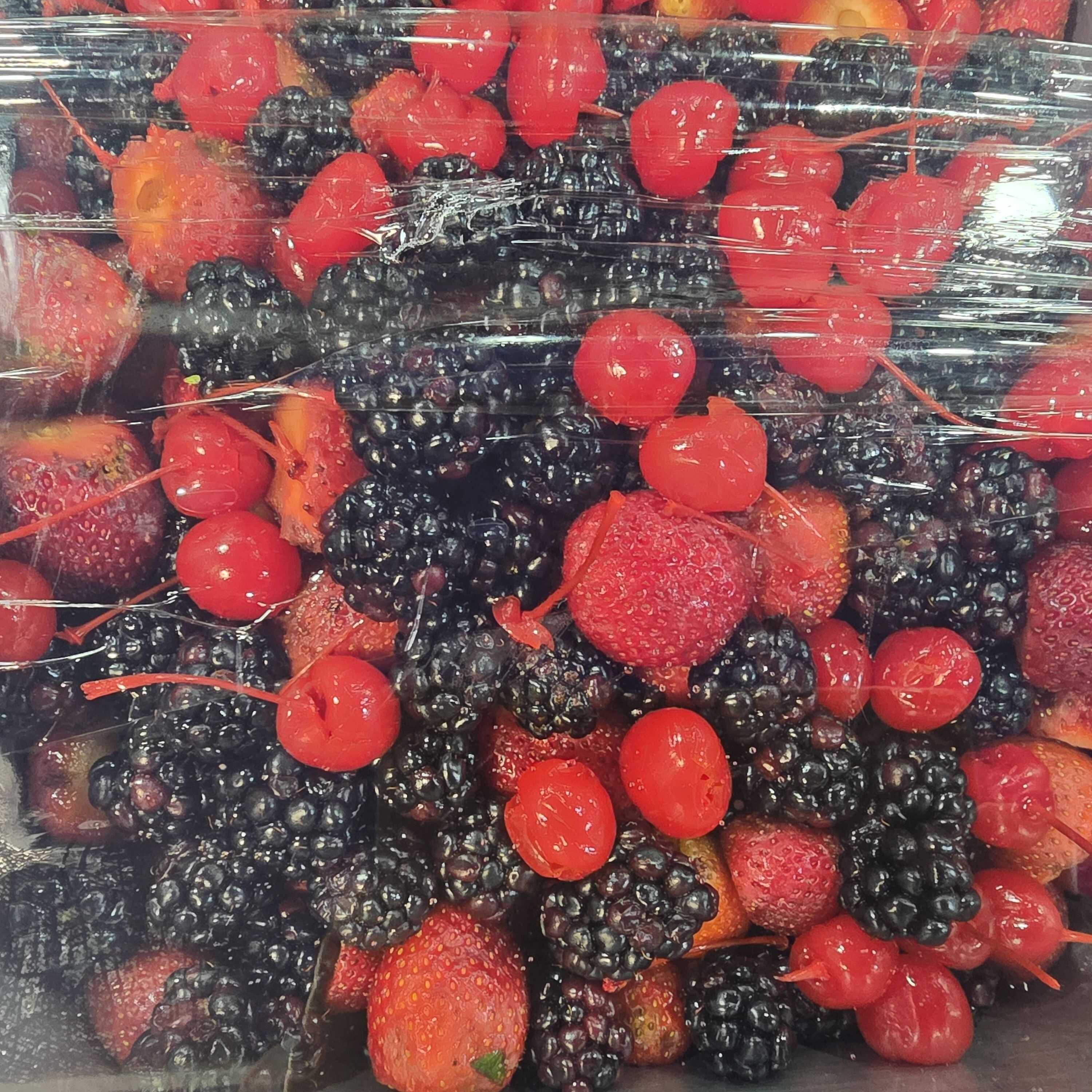 Rico cóctel de fresas, zarzamoras y cerezas, acompañadas con nuestros topping