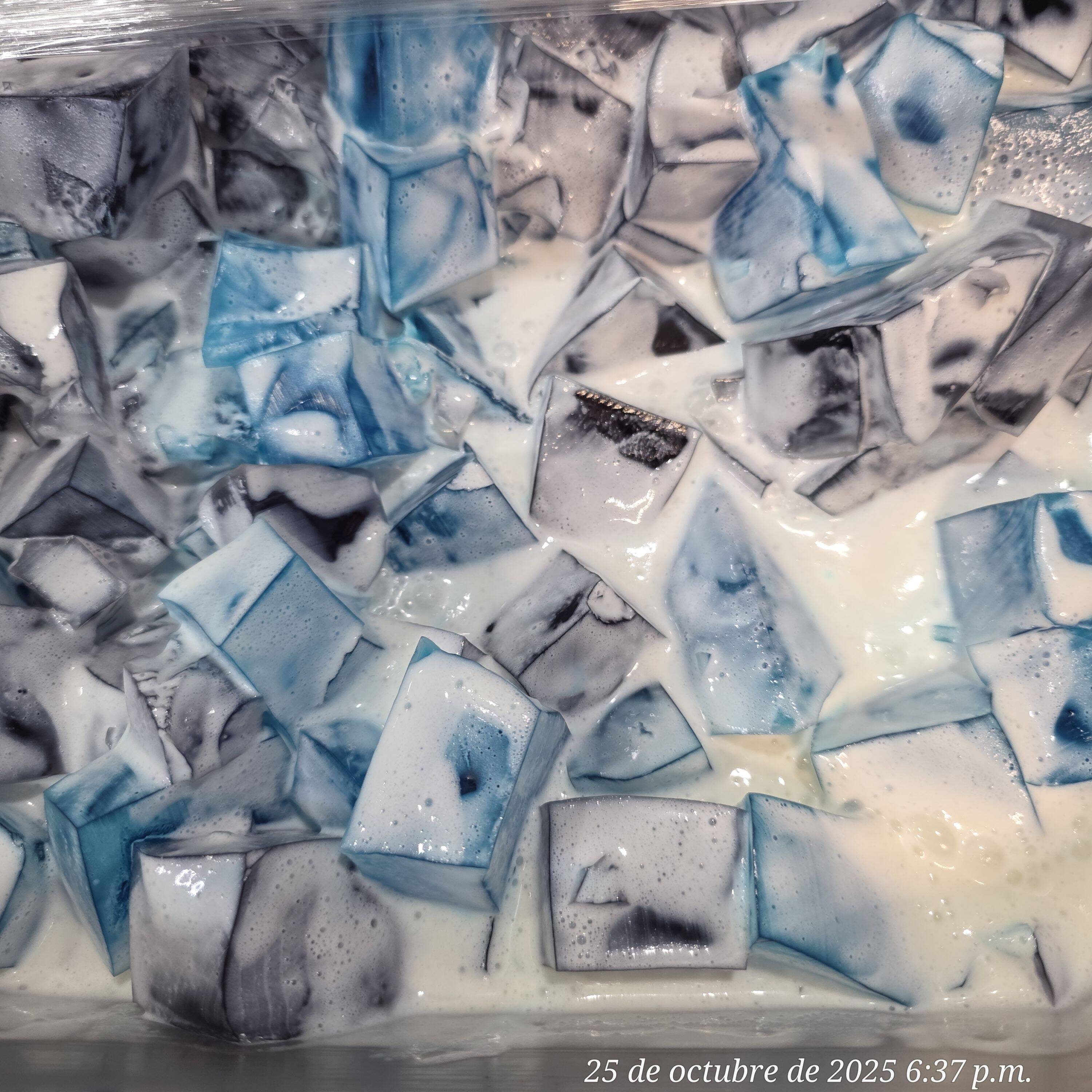 Gelatina sabor uva en cubos y crema preparada