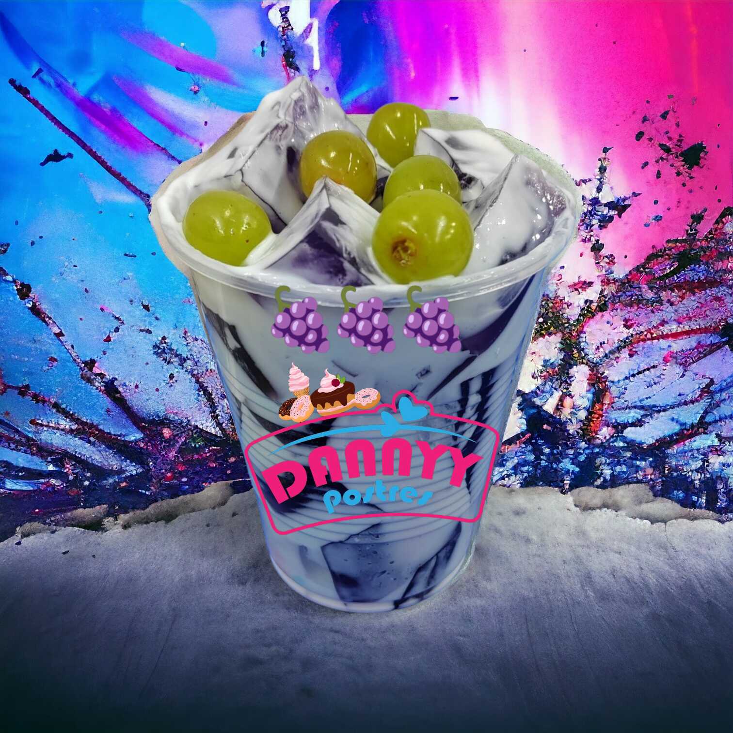 Uvas, duraznos con Crema Preparada