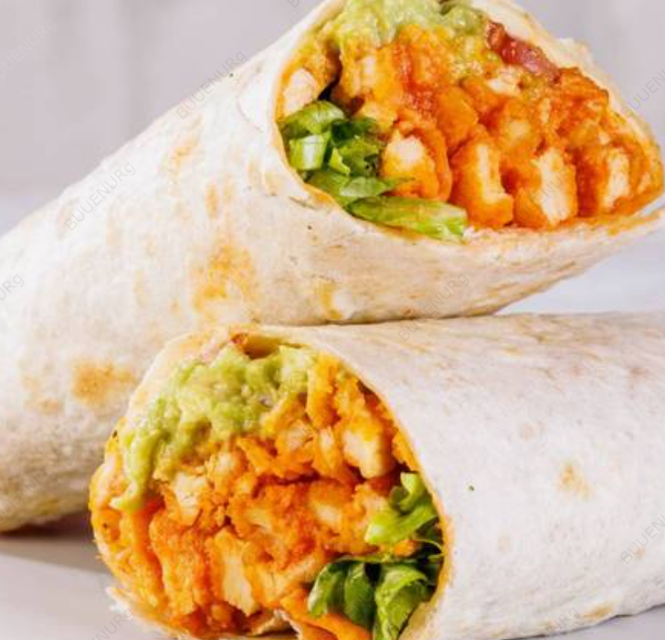 Mini Hot Cakes 7 pzas Azúcar glass*1 (contienen leche; huevo; escencia vainilla; mantequilla) + Burrito Red Hot con pasta chipotle (pollo empanizado red hot; tocino; guacamole; lechuga; jitomate y quesillo)*1