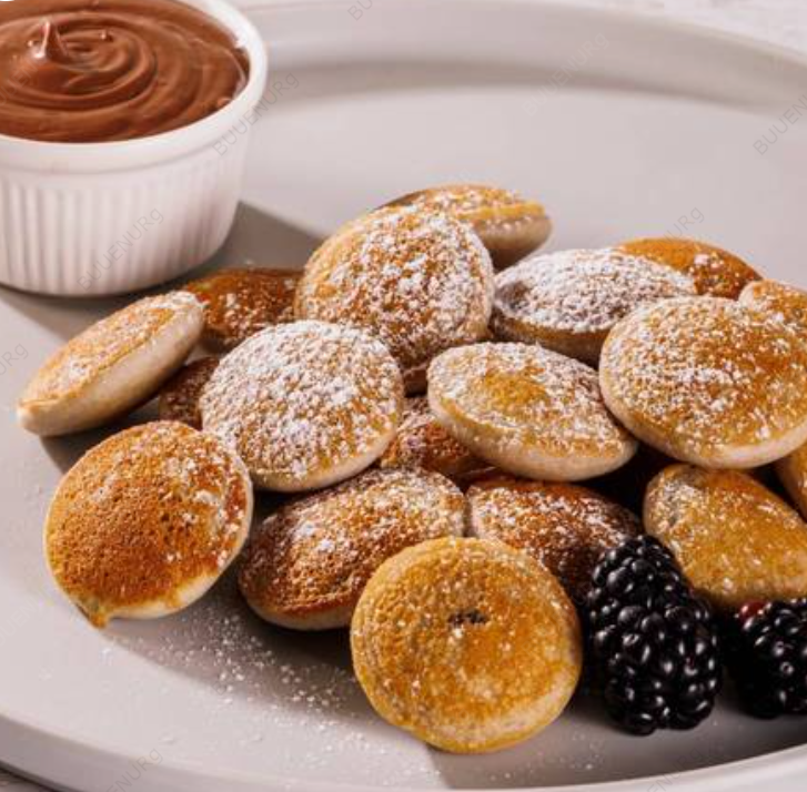 Contiene los hot cakes azúcar glass, harina para hot cakes, leche, huevo, esencia de vainilla y mantequilla.