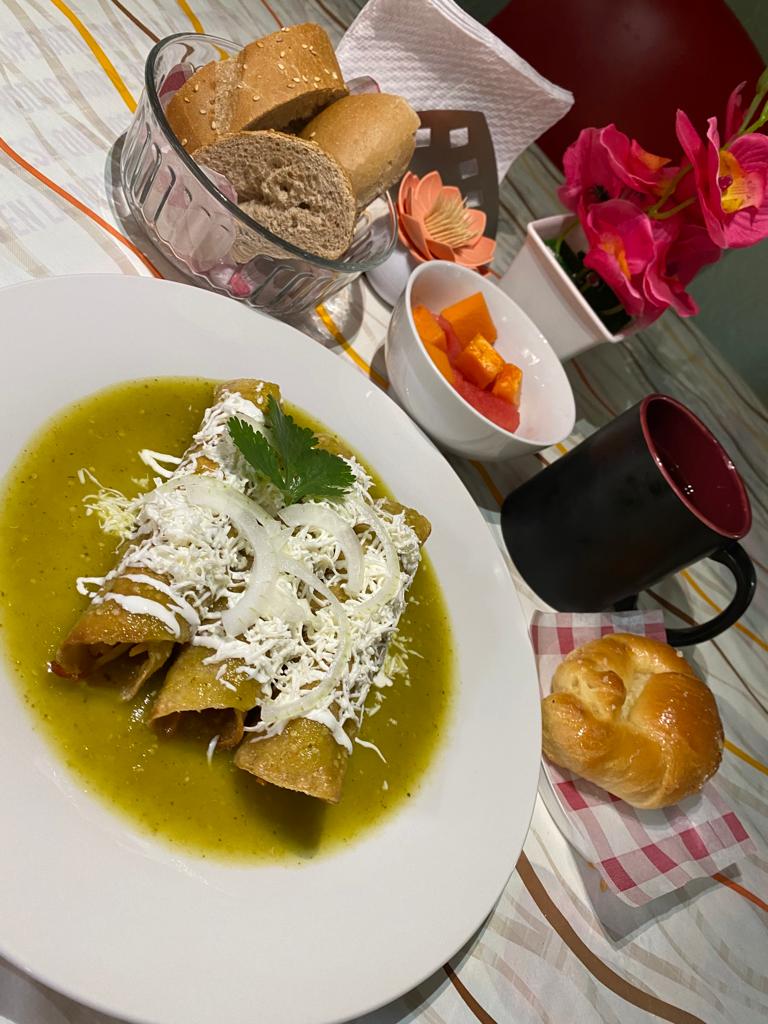 Pan de Dulce*1 + Pan de Sal*1 + Frijoles con Totopos*1 + Tacos Dorados Rellenos de Pollo*1