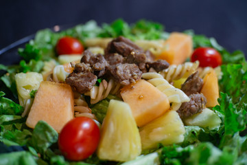 Arrachera bañada con exótica salsa de mango habanero, mas una rebanada de piña, queso Oaxaca y jamón.