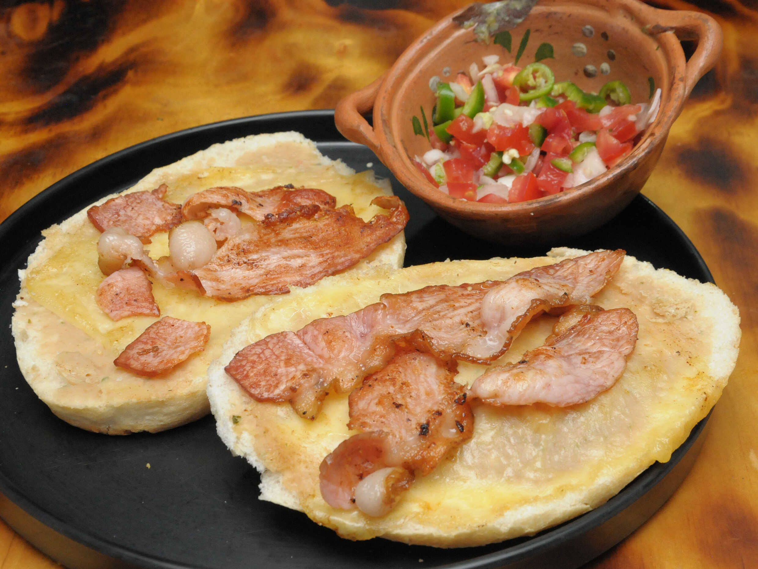 Deliciosos molletes acompañados de 200g de arrachera marinada y pico de gallo