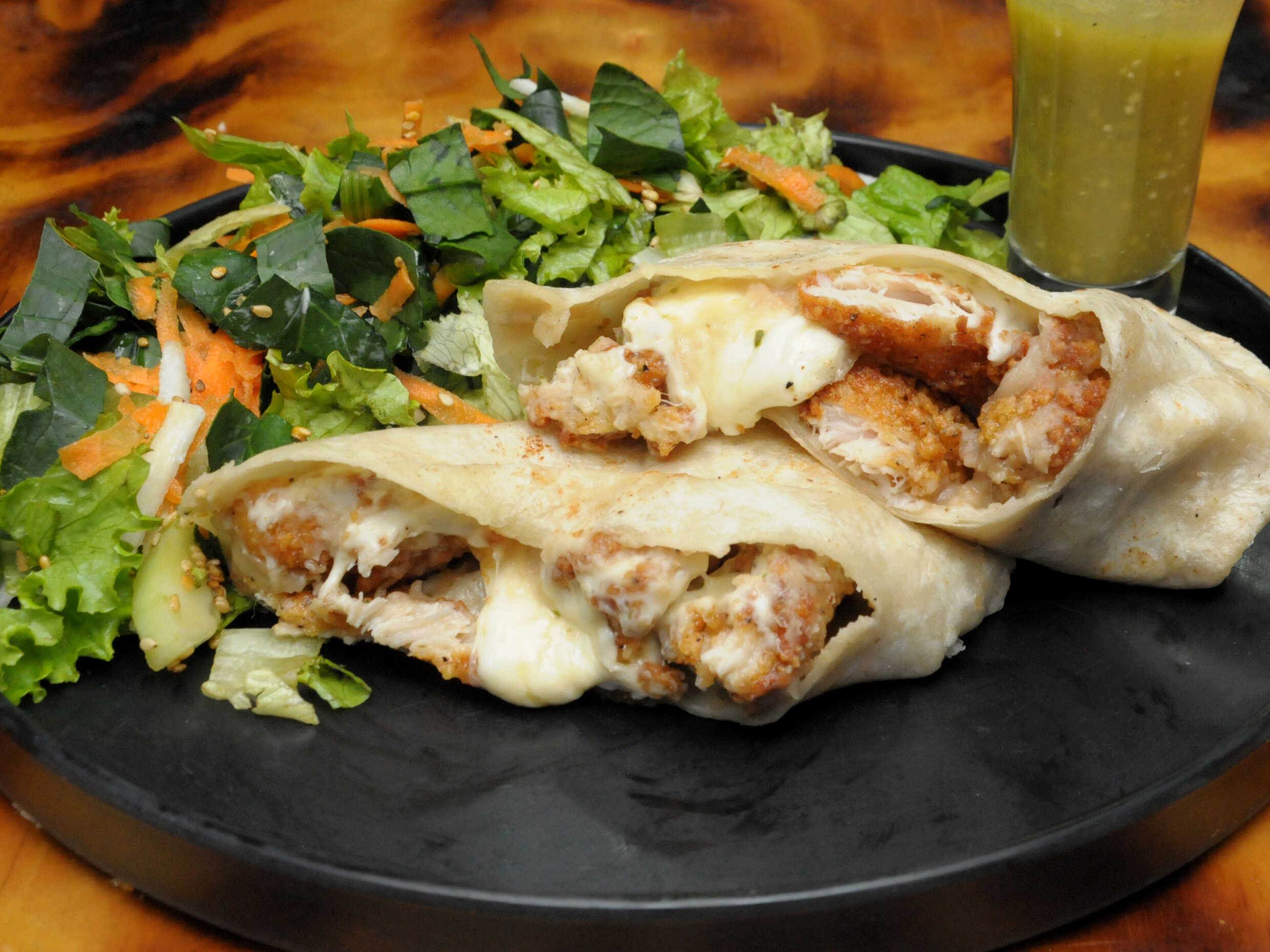 Deliciosa combinación de pechuga asada o milanesa de pollo, acompañada de jitomate, zanahoria, manzana, pepino y lechuga, papas o ensalada a elegir
