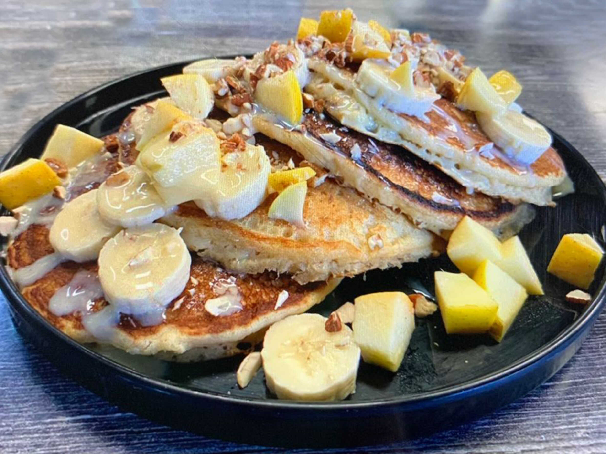 Relleno de pollo espinaca, jamón de pavo, pimiento morrón, queso panela. Acompañado de frijoles refritos. Incluye te y fruta de la estación.