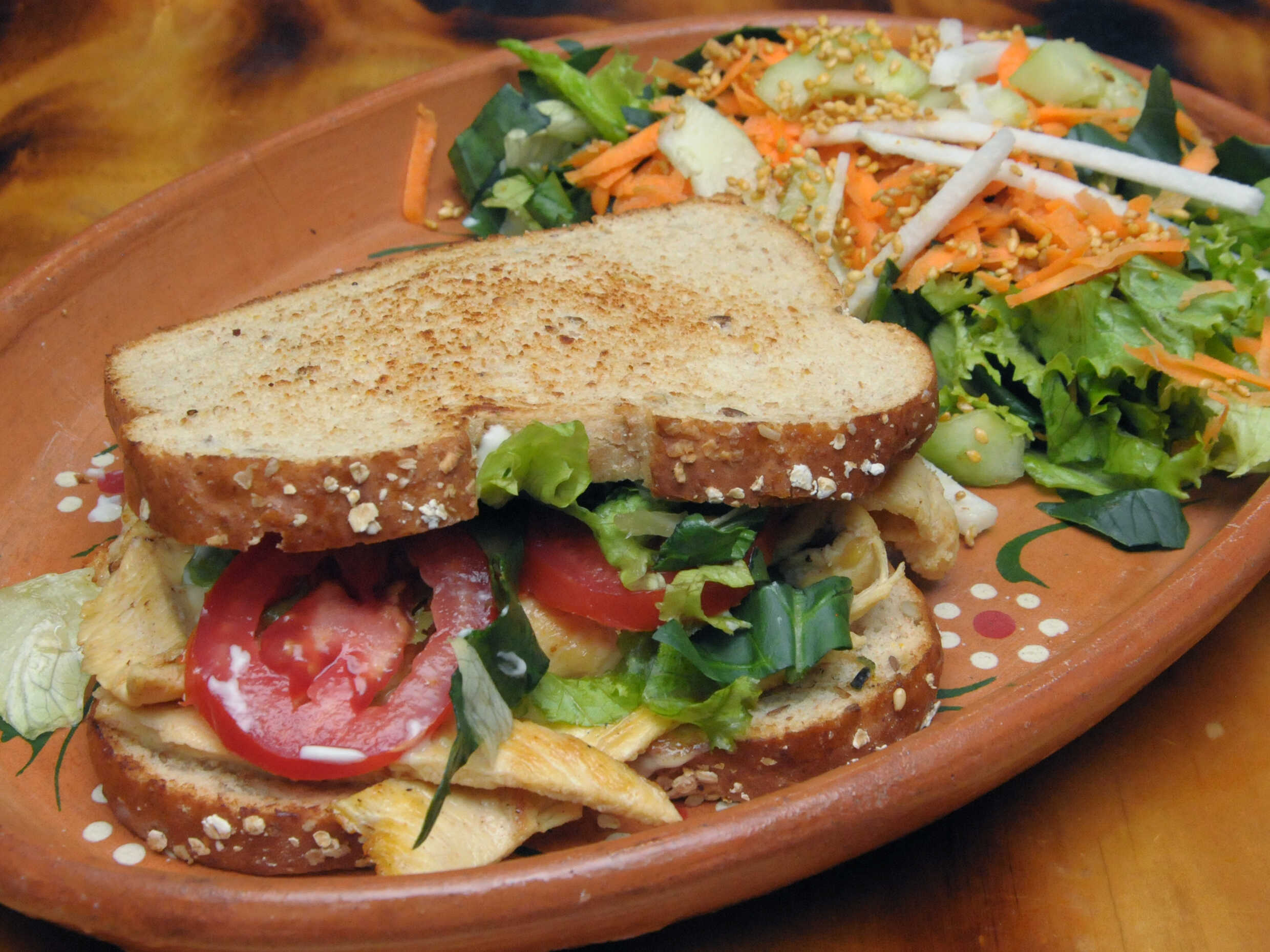 Delicioso sándwich de pan artesanal, con 100 g de pechuga de pollo asado o tenders crujientes de pollo, con aguacate, manzana, zanahoria, jitomate, lechuga. Acompáñalo de ensalada o papas a la francesa.