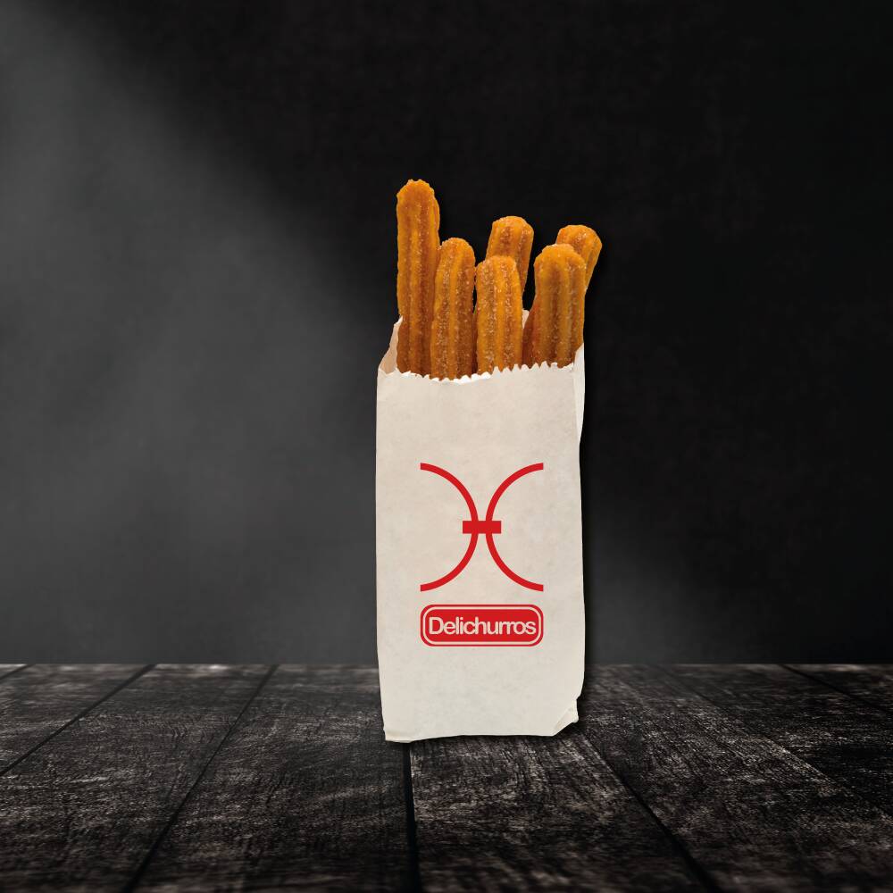 Churro espolvoreado de azúcar, canela y con el relleno gourmet de tu preferencia.