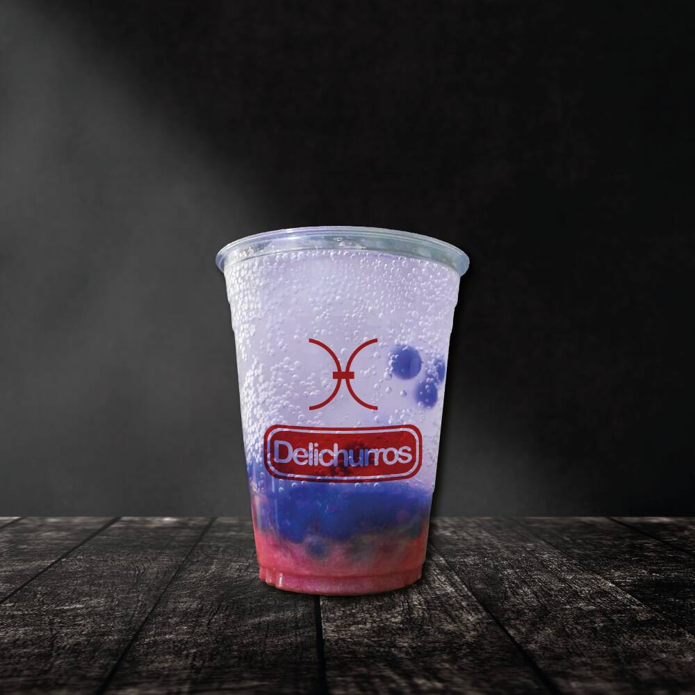 Bebida gasificada con hielos, jarabe a elegir y divertidas perlas explosivas, sabor a elegir.