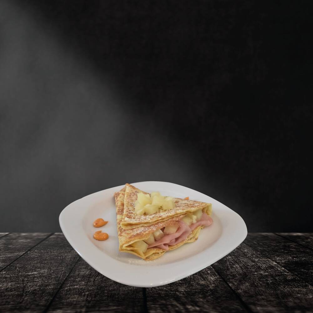 Deliciosa crepa, elaborada con harina integral y rellena con ingredientes frescos. Todas van decoradas con queso parmesano y perejil seco.