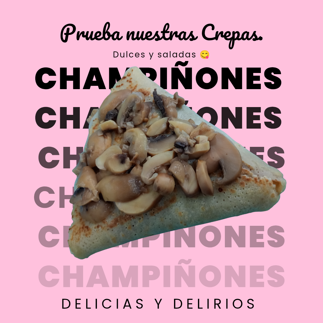 Deliciosa crepa salada rellena de queso mozarella manchego y champiñones rebanados